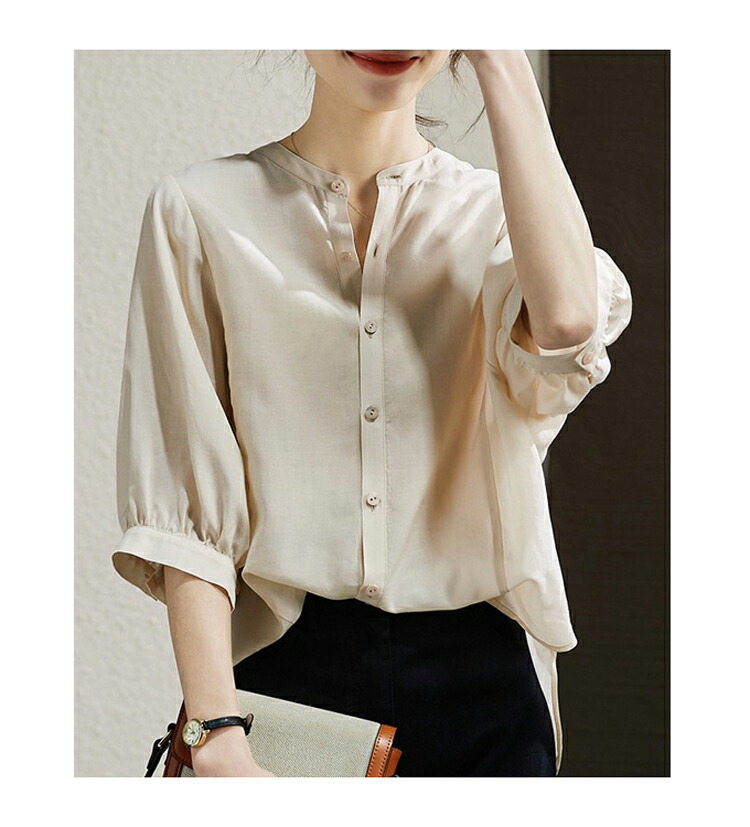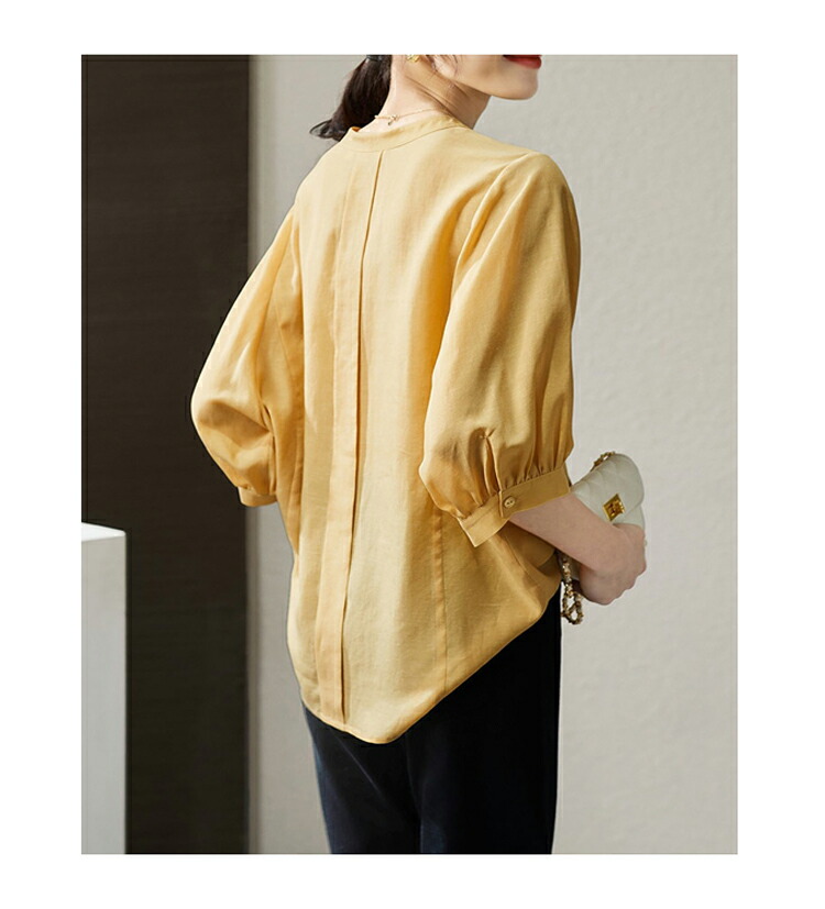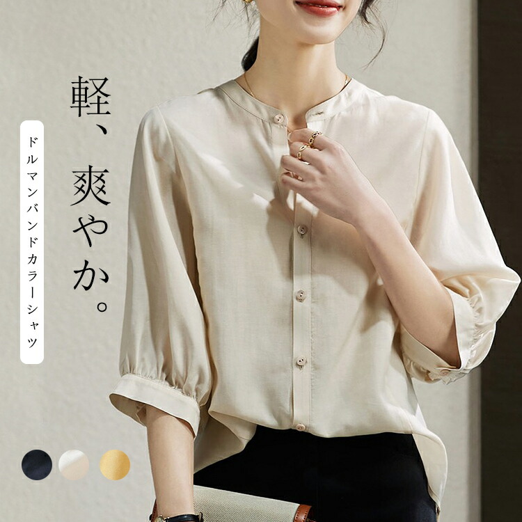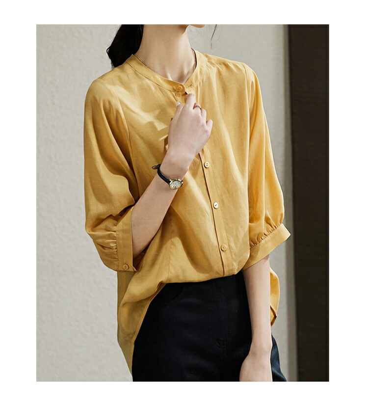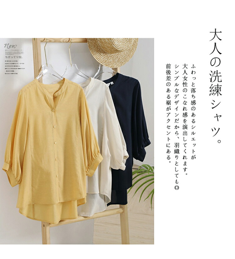 バンドカラーシャツ オフィス シャツ チュニック 早い者勝ち ネイビー 杏色 イエロー M L XL 2XL