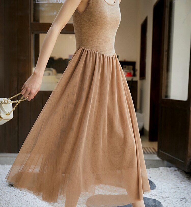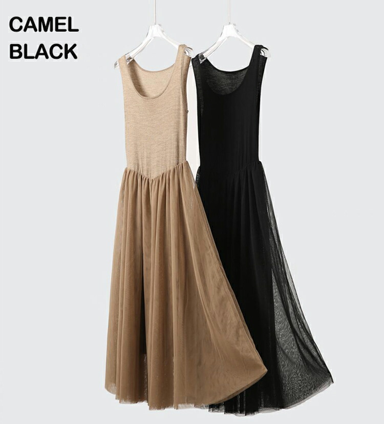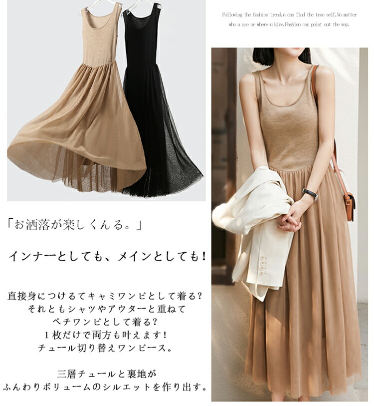 ワンピース 春 きれいめ レディース キャメル ブラック M L