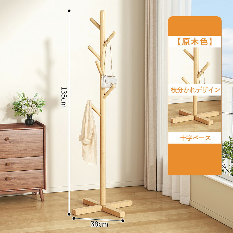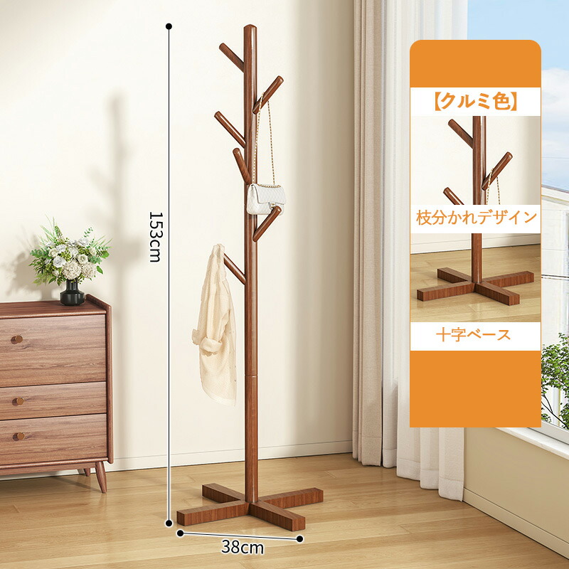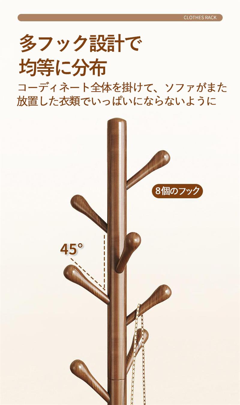 ポールハンガー コート掛け 新型枝型フ 原木色 クルミ色 ホワイト フック6個 フック8個