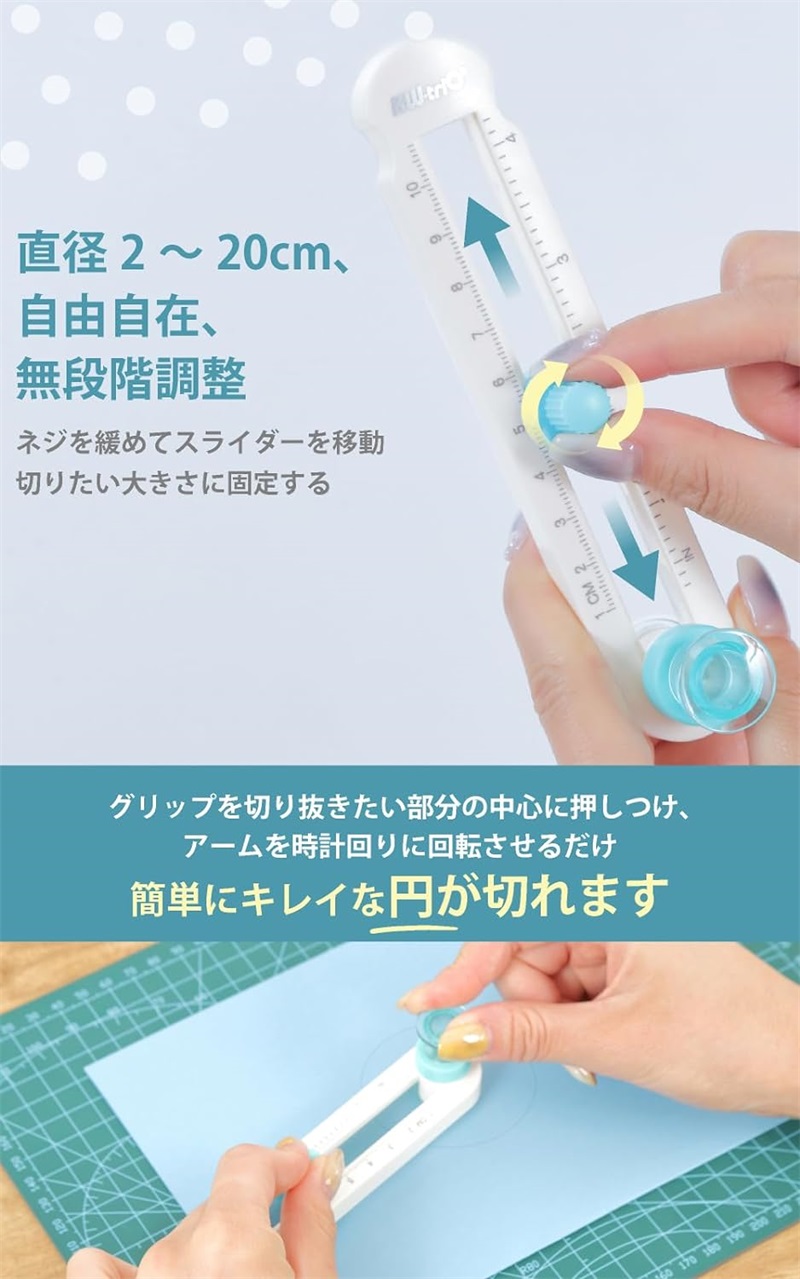 サークルカッター 穴があかない カッテ 日用品雑貨 文房具 手芸 人気 本体のみ 替え刃*2個(本体なし) 本体+替え刃*1個