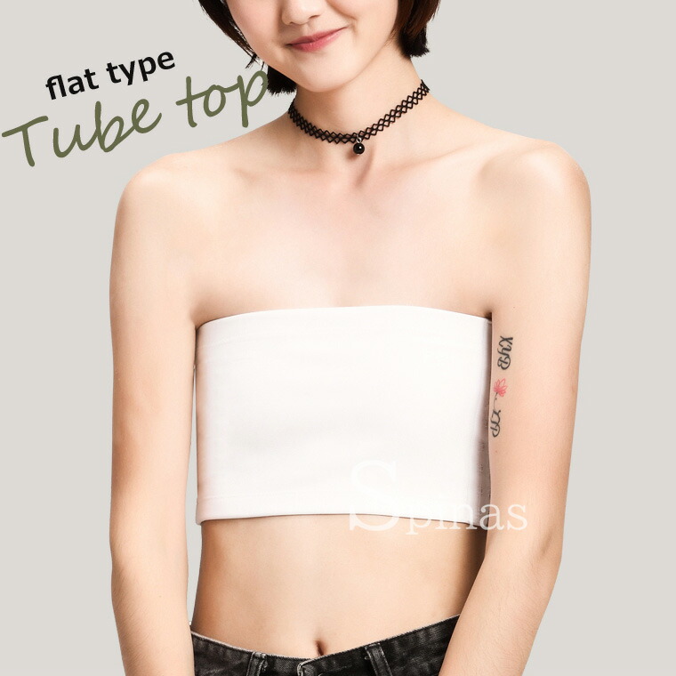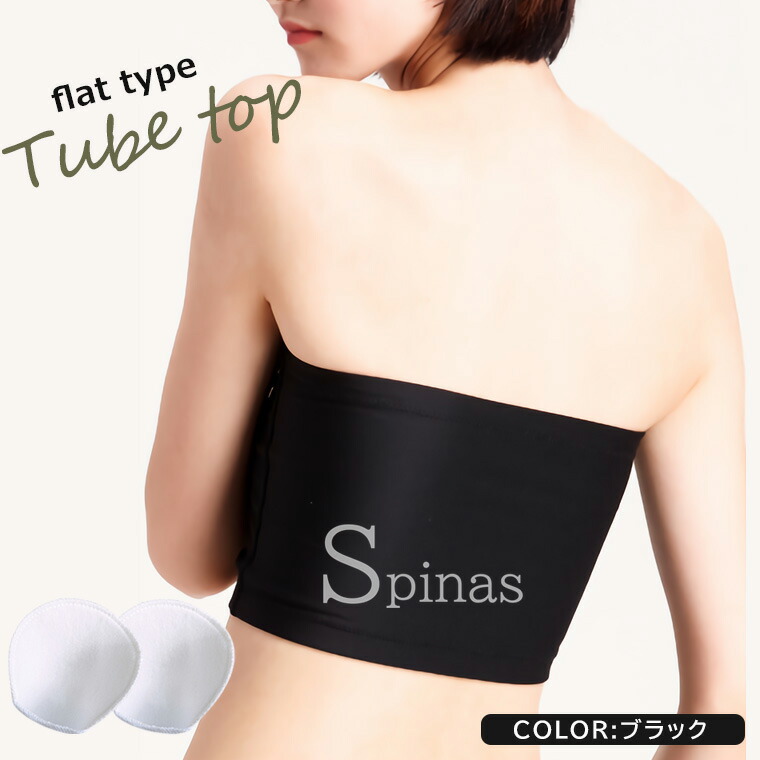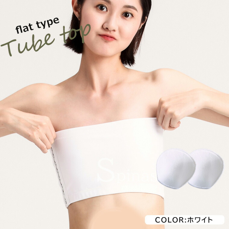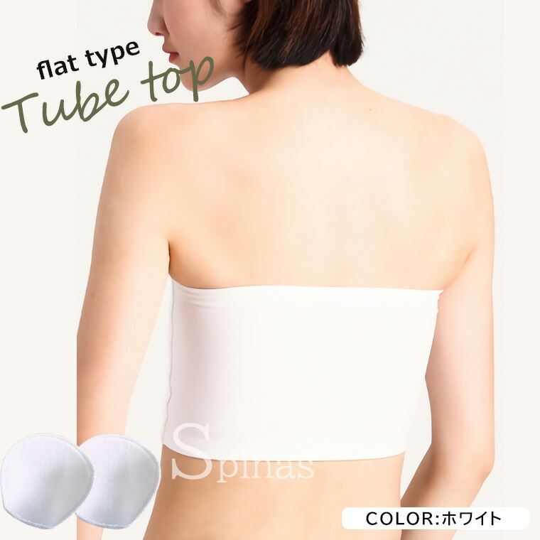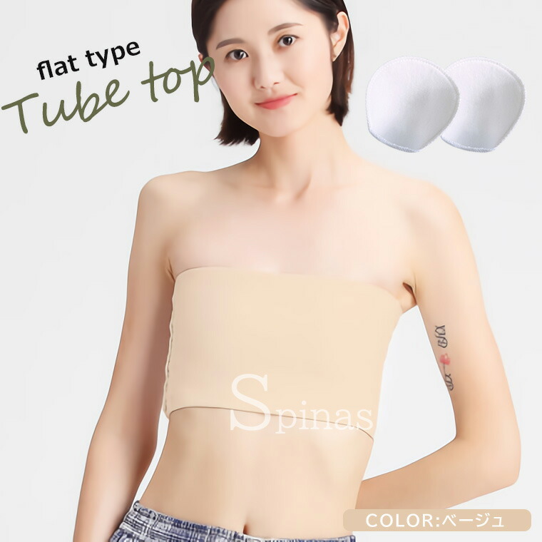 胸のボリュームを抑えるトップスに響かないパッド付チューブトップのご紹介です・ ブラ ノンワイヤー さらしブラ 3段フック 取り外し可能 パッド薄手 着やせ効果