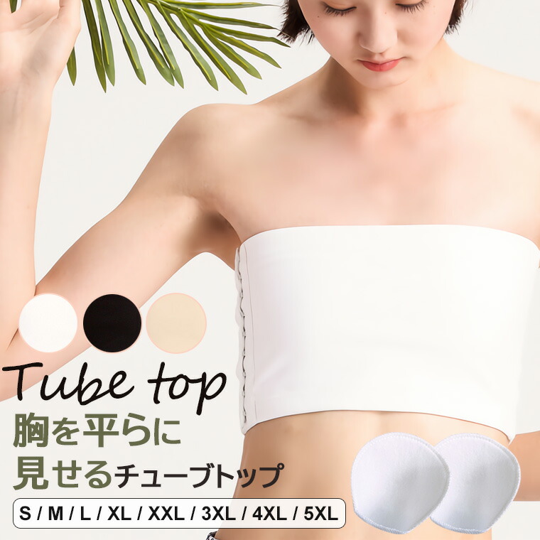 大きな胸を小さく見せるブラ チューブトップ スリム 着痩せ ブラ 胸が小さく見えるブラ 3段フック パッド付 透明ストラップ付ストレスフリー 薄手 着やせ効果 全3色 ベージュ ブラック ホワイト S M L XL XXL 3XL 4XL 5XL ボリュームダウン ストレスフリー 薄手 着やせ効果 補正下着 さらしコスプレ 小さく見せる なべしゃつ 男性キャラ