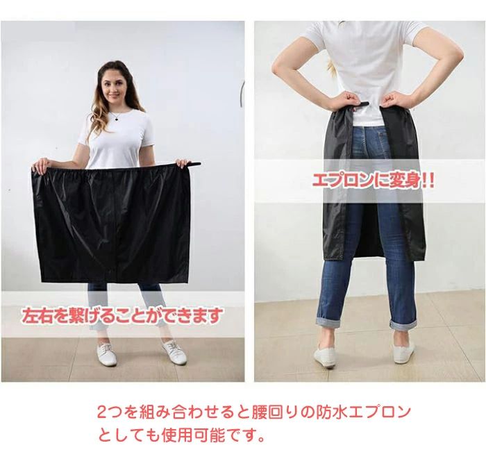 左右セットの商品ですが、2つを組み合わせると腰回りの防水エプロンとしても使用可能です。