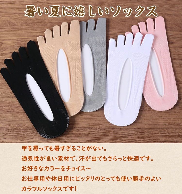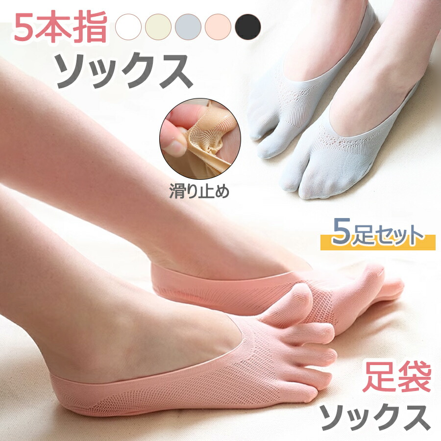 5本指ソックス レディース 無地 足袋ソックス 5足セット 5本指 脱げない ソックス かわいい 浅履き 靴下 スニーカー フットカバー 短め 可愛い パンプス 足元 見えない