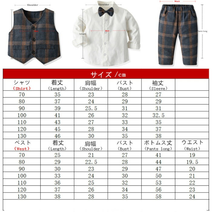 セット:ズボン+シャツ+蝶ネクタイ+ベスト(取外不可)