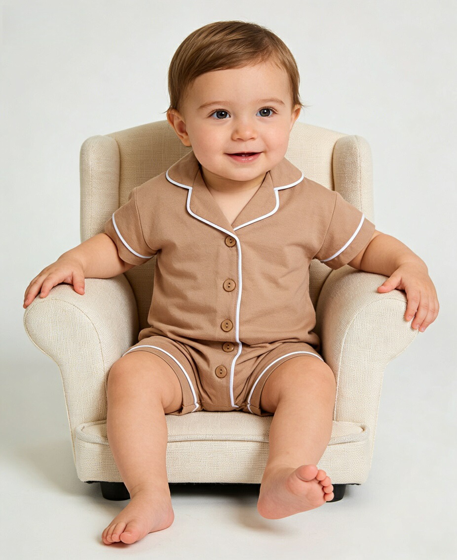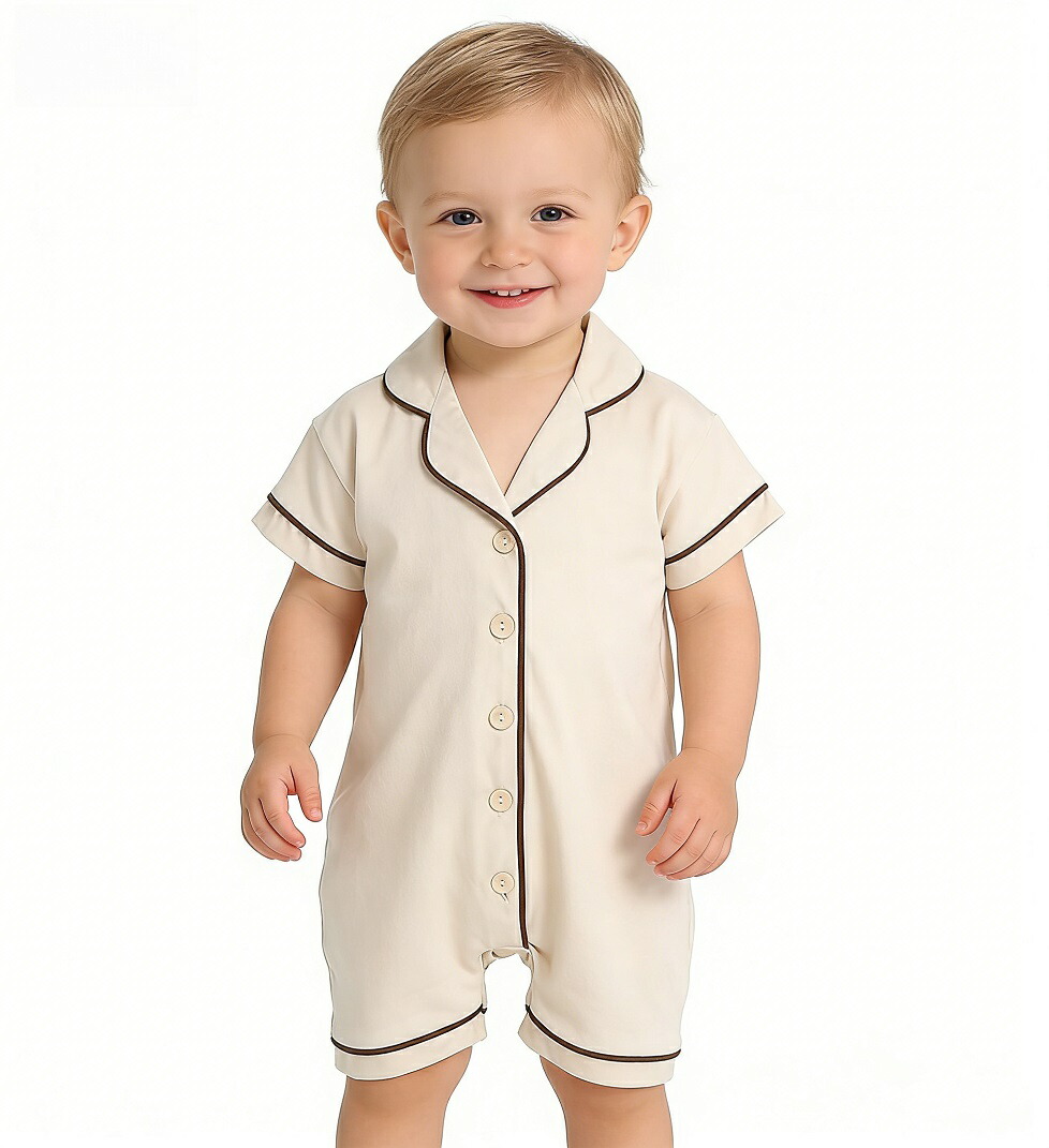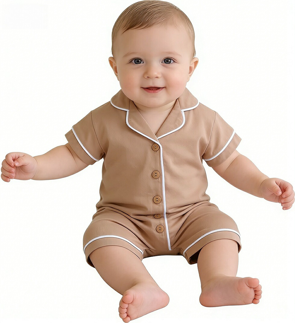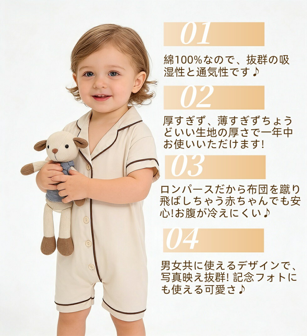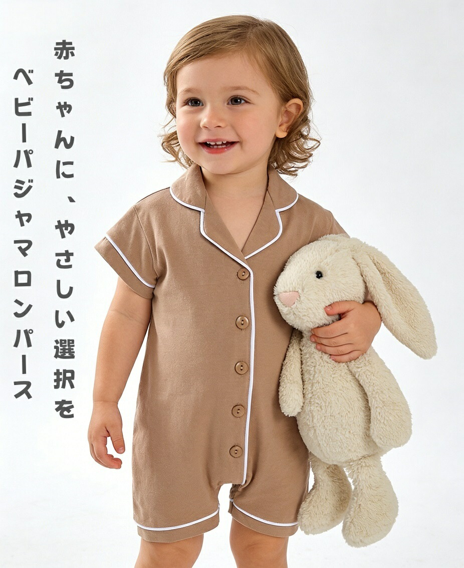 ベビー パジャマ ロンパース 半袖 綿 キッズ ベビー マタニティ 早い者勝ち ベージュ ブラウン 66cm 73cm 80cm 90cm 100cm