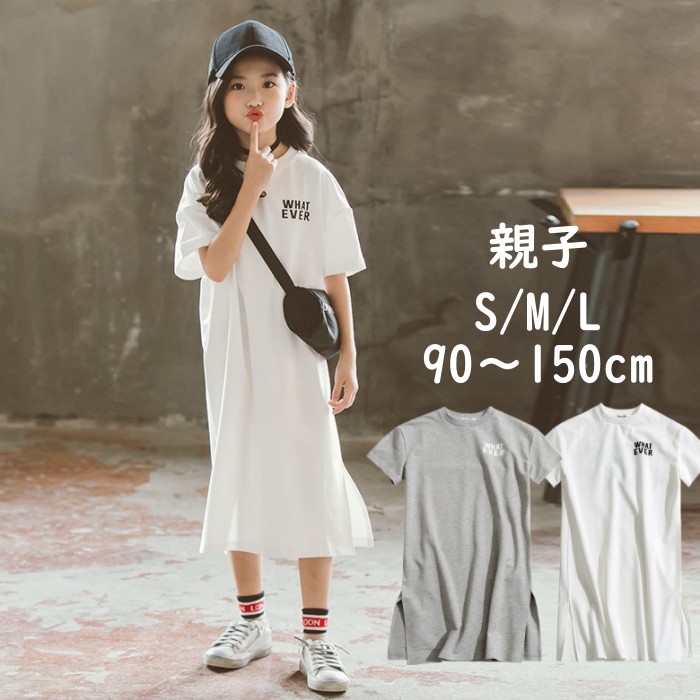 キッズ ワンピース 夏 半袖 綿 親子 tシャツワンピース 子供服 女の子 可愛い 大きいサイズ 韓国子供服 おしゃれ 小学生 中学生 高校生 大人っぽい きれいめ 通園 幼稚園 中 通学