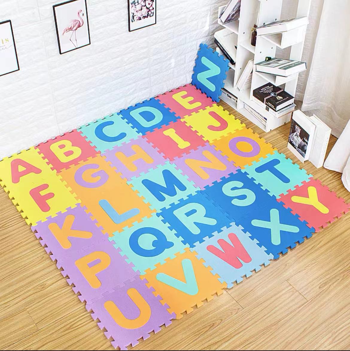 パズルマット 30×30×0.8cm 数字10pcs&アルファベット26pcs 2種類セット EVAフォームマット 知育赤ちゃん お部屋の収納にも ベビー用マット キッズ