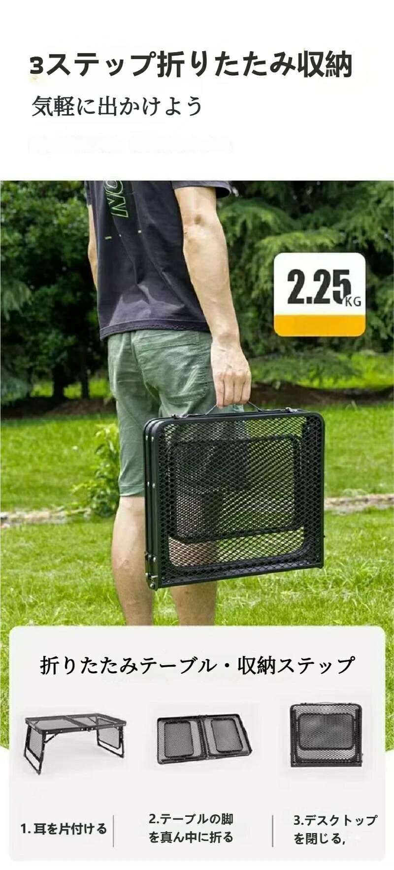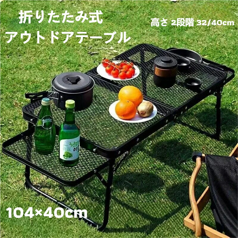 折りたたみテーブル キャンプテーブル アウトドア アルミフレーム メッシュ天板 耐熱コーティング バーベキュー 設営簡単 キャンプ