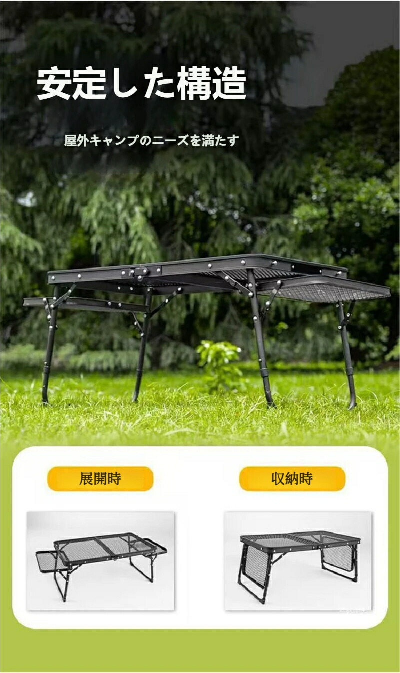 折りたたみキャンプテーブル(昇降メッシュタイプ)