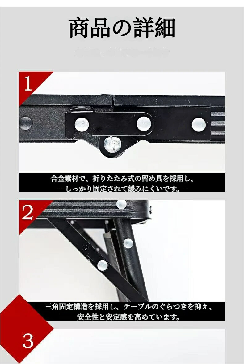 高硬度でありながら軽量な航空アルミ素材を採用。持ち運びが容易で、高い耐荷重も実現しています。