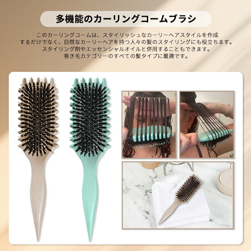 ヘアブラシはさまざまなヘアタイプと長さに適用され、ストレート、カール、カールにかかわらず、髪をケアすることができます。カールを強化するだけでなく、完全にまっすぐで分離されたラインを作り出す特別な形状で設計されています。 優しい毛はすべての髪質とカールパターンに適しており、破損やダメージを防ぎます。