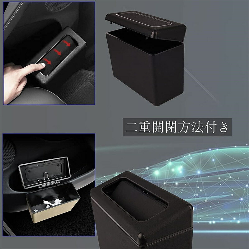 車用 ゴミ箱 車内ゴム袋 シリコンゴミ箱 ドアポケット 小型便利 省スペース PU製純正感覚 ダストボックス ドア 蓋開閉タッチ開閉二重設計 蓋つき 防水 シートバックポケットに引掛け