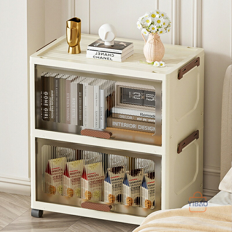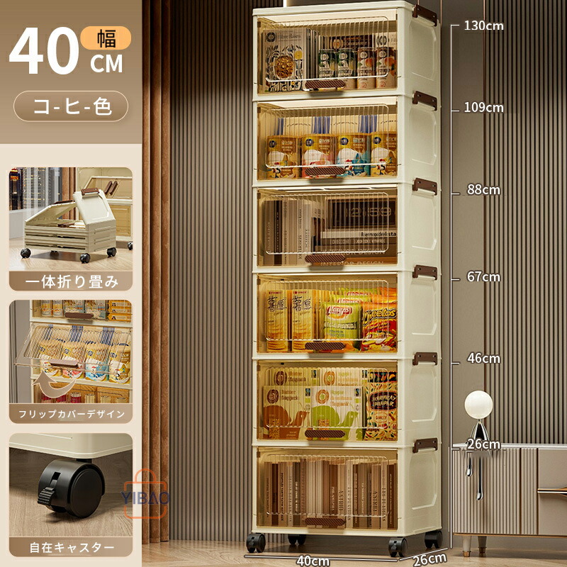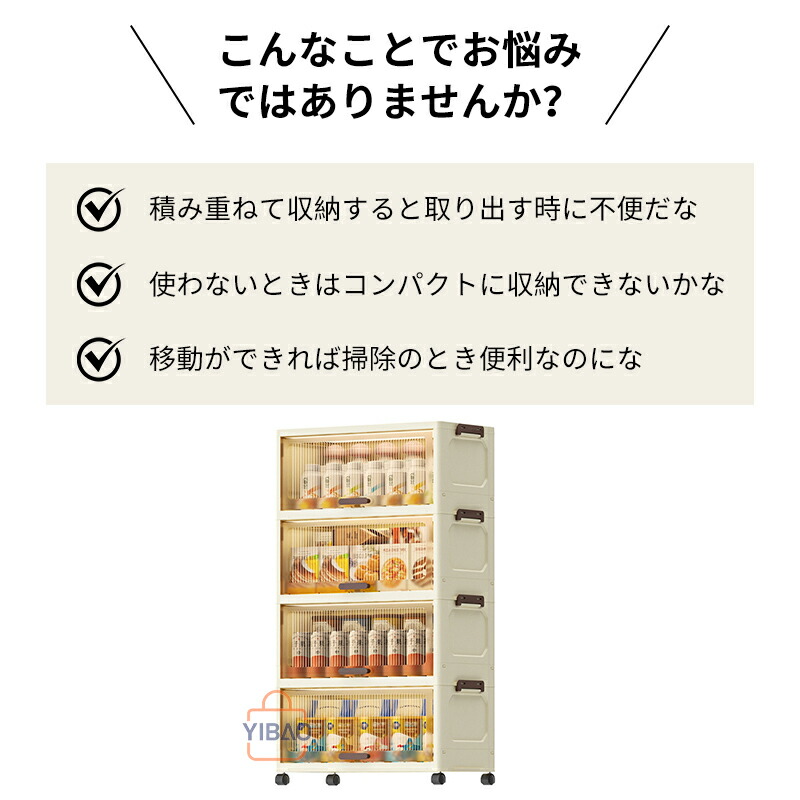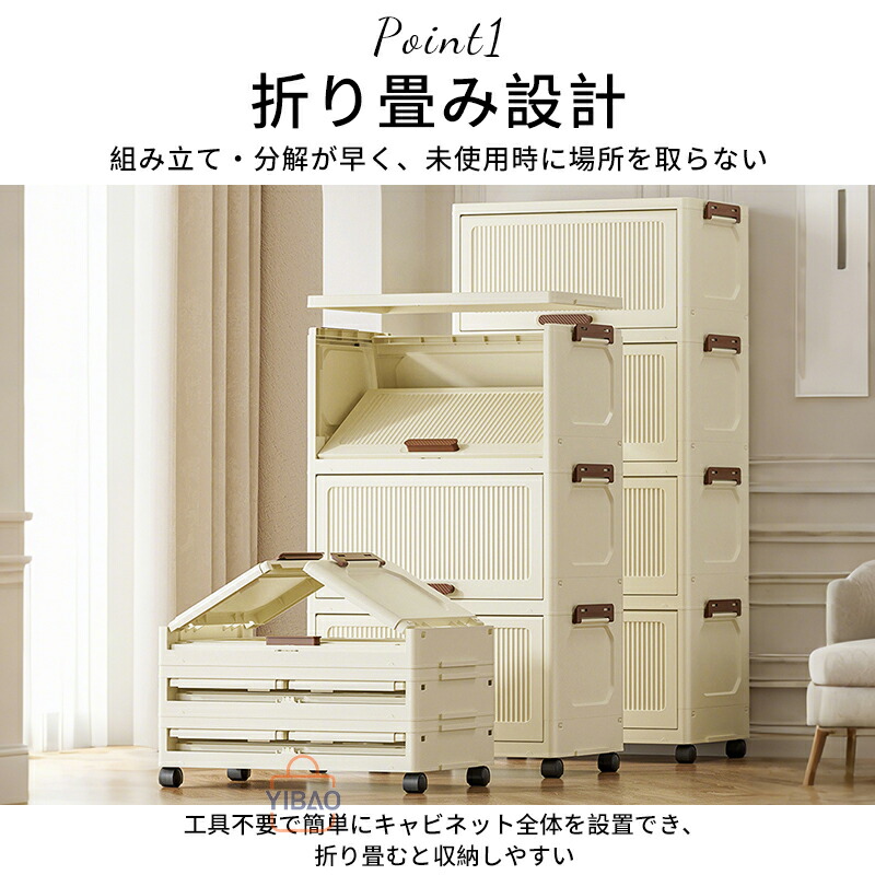 【透明設計 取り出しやすい】前開きの半透明ドアで、中身が一目瞭然になり、収納物を簡単に見つけます。折り畳み可能 キャスター付きで、収納時や移動時に便利。実用性を大幅に向上。