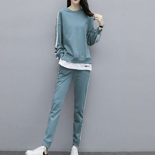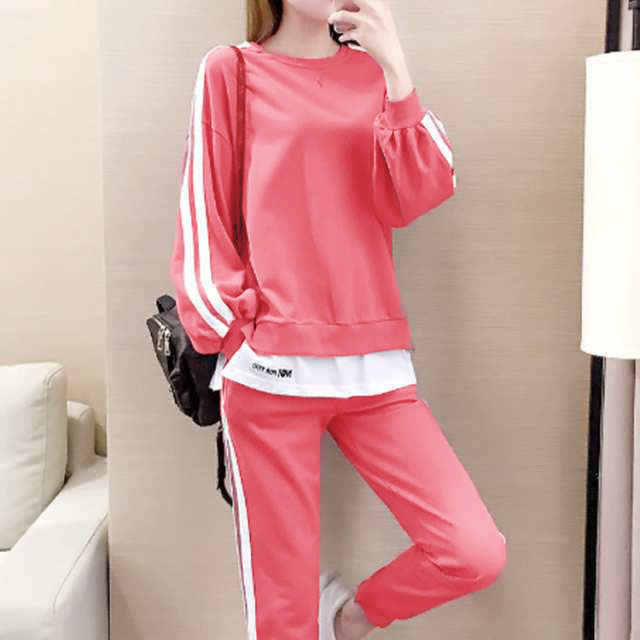 スウェット 上下セット 重ね風 レディ スーツ セットアップ パンツスーツ 通販 ピンク上下セット ライトブルー上下セット ブラック上下セット M L XL 2XL 3XL 4XL