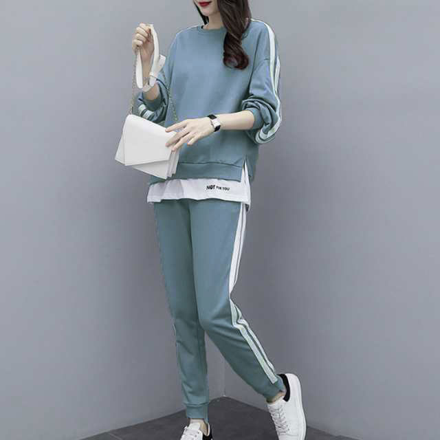 スウェット 上下セット 重ね風 レディース ジャージ セットアップ 女の子 おしゃれ 着痩せ 長袖 パーカー スウェットパンツ 大きいサイズ カジュアル スポーツウェア ルームウェア 部屋着 ゆ ジム