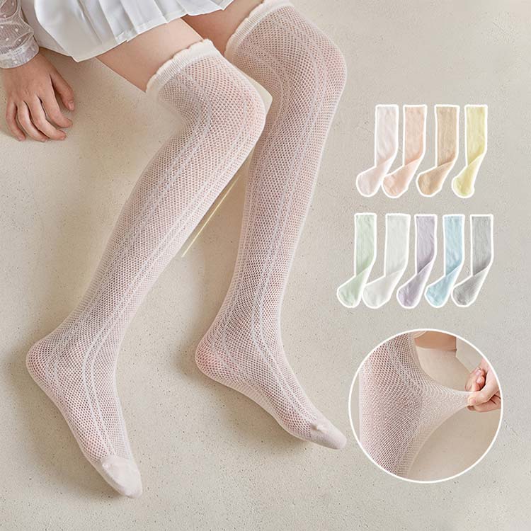3足セット!蒸れないメッシュコットン素材で可愛い子供用ニーハイソックス。
