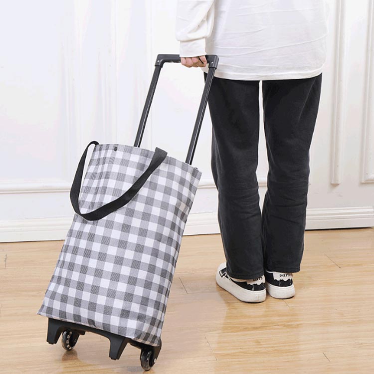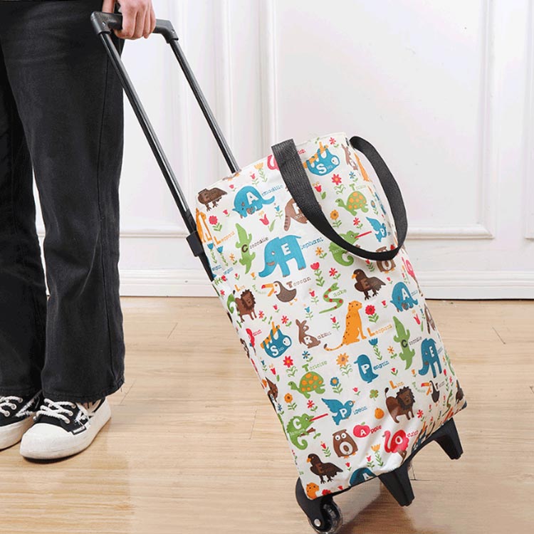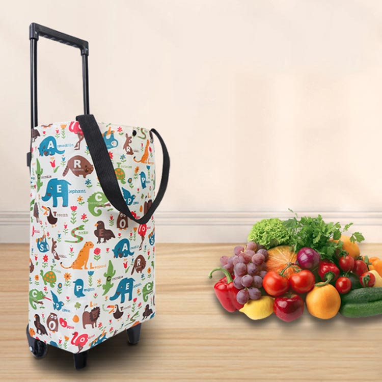 おしゃれな柄が目を引くカート。キャスター付きで持ち運びラクラク! 大容量でたくさんのお買い物もラクラク!