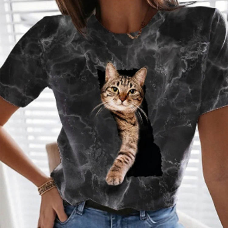 3D 猫プリントtシャツ 3D柄 カットソー レディース 半袖 Tシャツ おもしろ 面白 猫 tシャツ ねこ キャット にゃんこ かわいい 夏 大きサイズ ラウンドネック