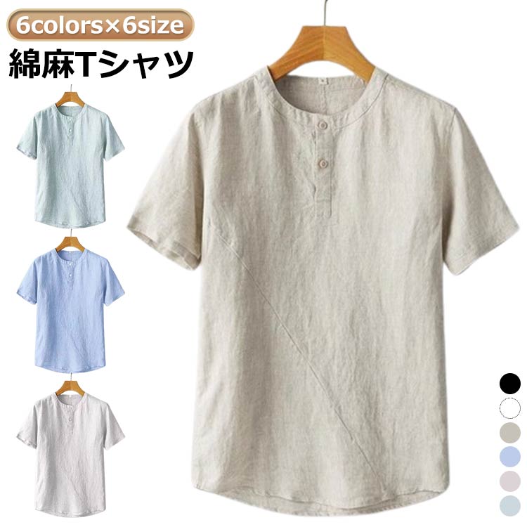 リネンTシャツ 無地Tシャツ 半袖 サマーTシャツ 麻 tシャツ コットンリネン ランドネック メンズ トップス 麻tシャツ 無地 シンプル 白tシャツ uネック メンズファッショ 綿麻