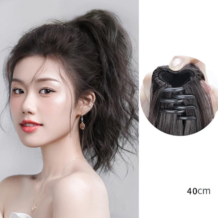 クリップ式 ポニーテール セミロング エクステ 自然 ワンタッチ ウィッグ 部分 つけ毛 カール 女性 黒 ヘアアレンジ ポニーテールウイッグ 簡単 増毛 ボリューム ワッフルウェ ウェーブ