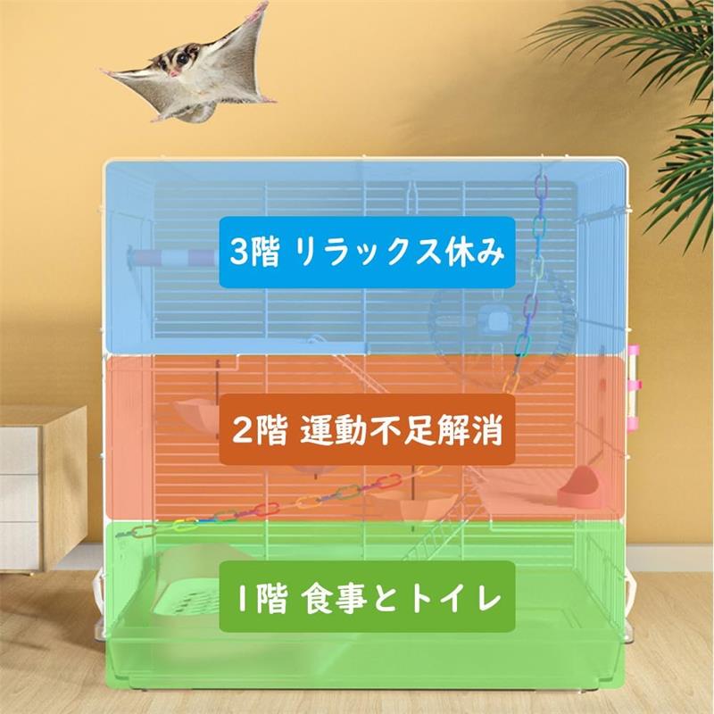 モモンガ ケージ 3階建て リス 1個 大型 小動物 ゲージ 大きい 縦長 金網 フクロモモンガ イージーホーム 快適 シマリス デグー 飼育 持ち運び 網 ハムスター