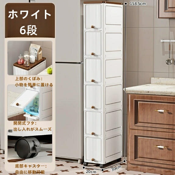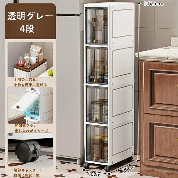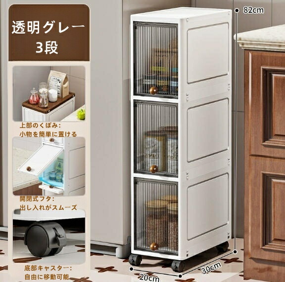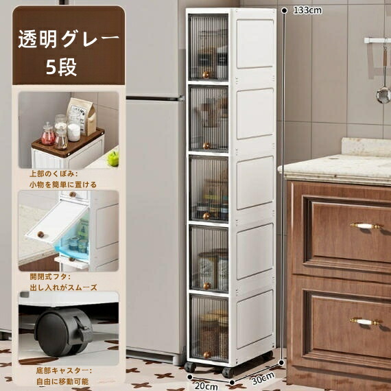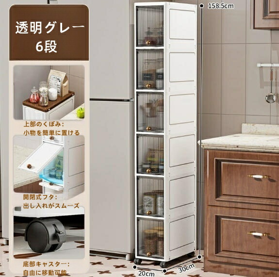 スリムストッカー 隙間収納 20cm 透明グレー ホワイト 2段 3段 4段 5段 6段