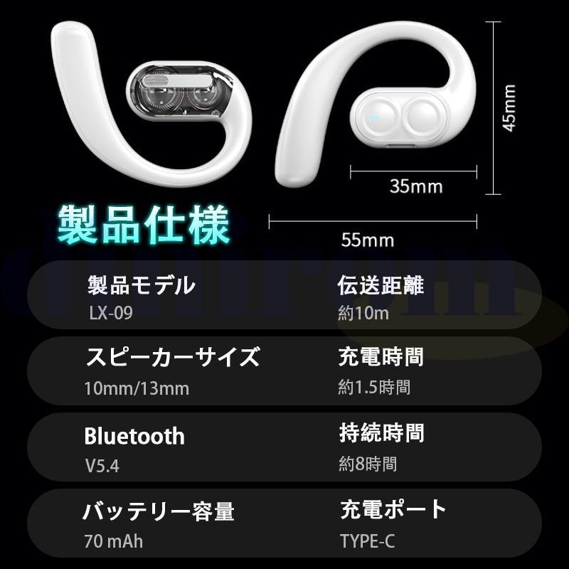 骨伝導イヤホン ワイヤレスイヤホン Bluetooth5.4 片耳掛け 超軽量 type-c充電 8時間再生 マイク付き 耳を塞がない Hi-Fi高音質 iPhone Android適用 IPX7防水