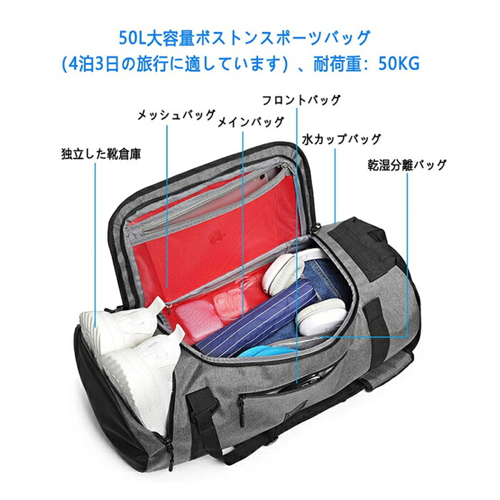 ボストンバッグ 孤立した靴収納袋があります、仕事の後に靴を交換してください運動する。スポーツバッグ 側面には別の防水バッグがあり、汚れた服は別々に保管できます。