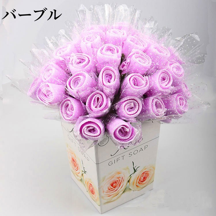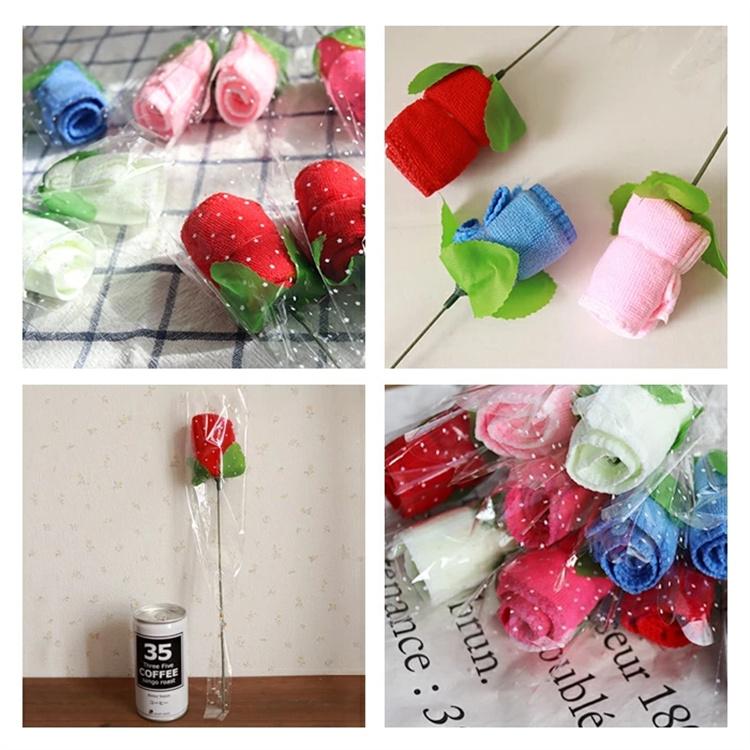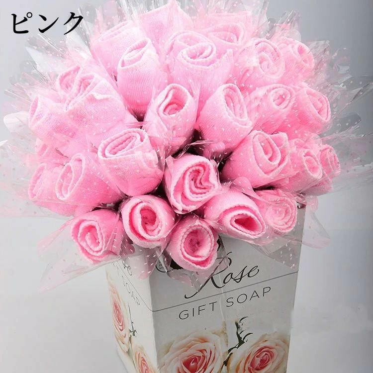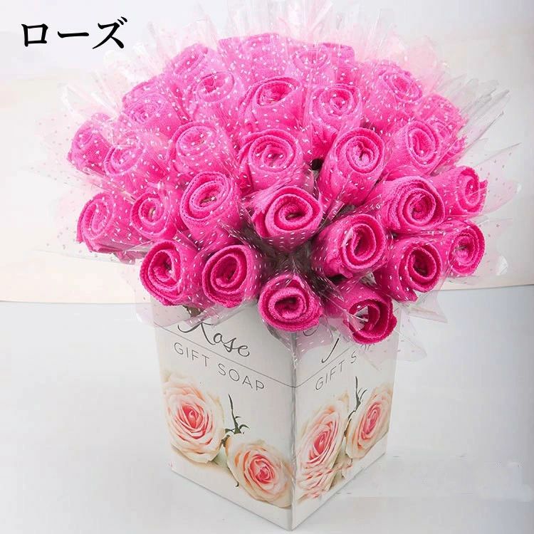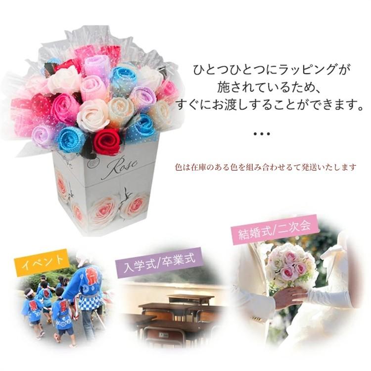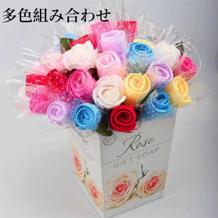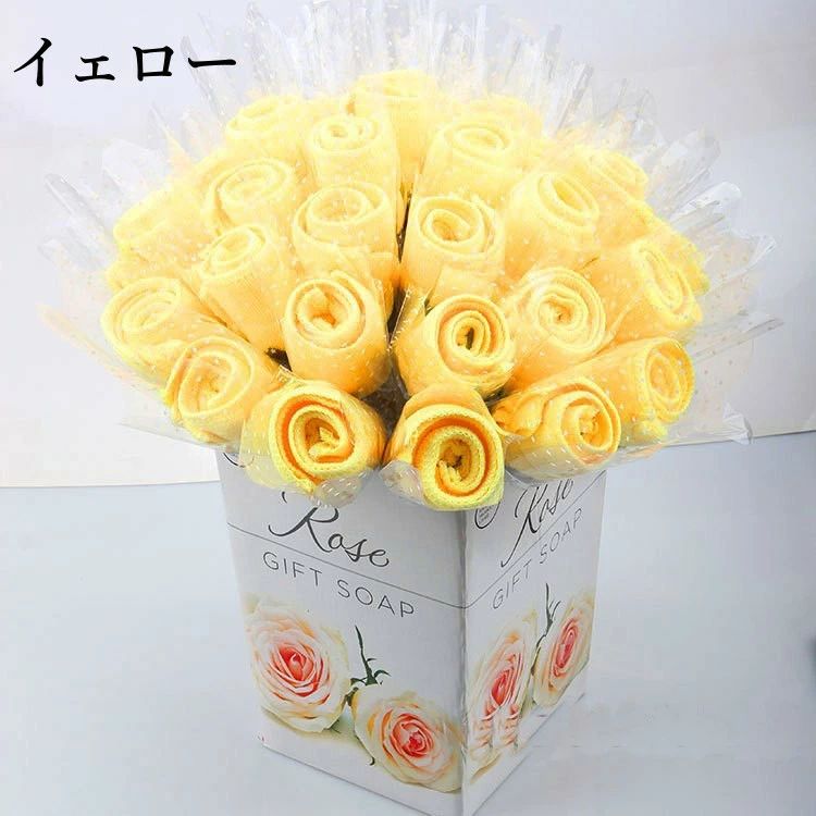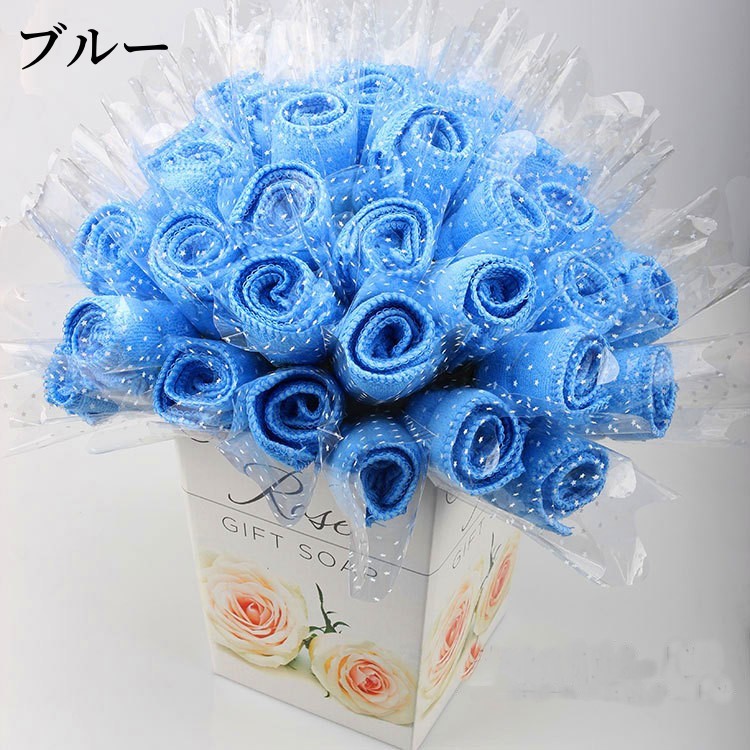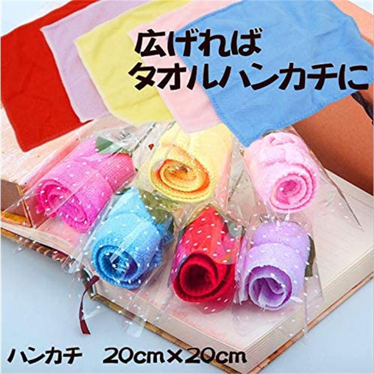 タオルギフト 花束 タオルハンカチ 薔 レッド ピンク イェロー バーブル ローズ ブルー 多色組み合わせ