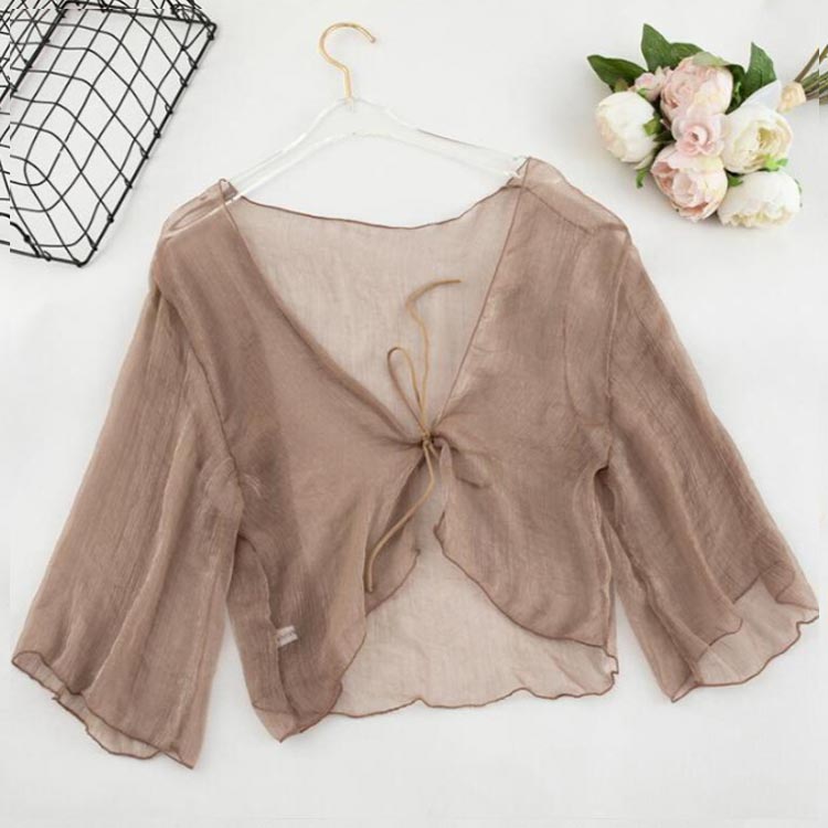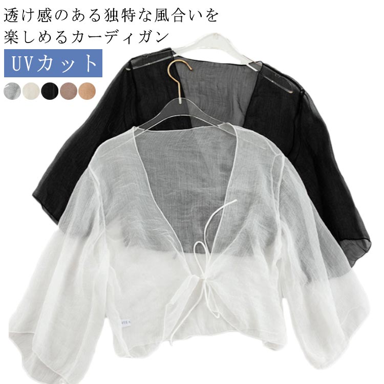 サマーカーディガン ボレロ 半袖 ショート丈 カーディガン 透け感 シフォン UVカット かわいい おしゃれ きれいめ シアー レディース 上品 冷え防止 冷房 紫外線対策 羽織 夏 秋 リボン 春