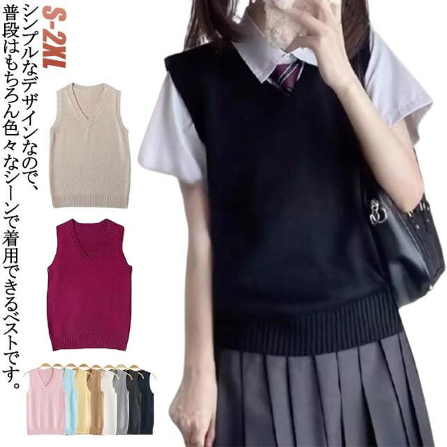 ノースリーブ ベスト セーター ニット 学生服 その他 人気 ブラック イエロー ライトグレー レッド ネイビー ベージュ ピンク コーヒー ダークグレー ホワイト ライクブルー S M L XL 2XL