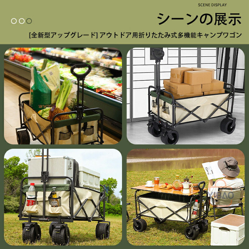 キャリーワゴン アウトドアワゴン 折りたたみ マルチキャリー キャンプカート 大型タイヤ アウトドア 子供乗せ 大容量 キャリーカート コンパクト 4輪 頑丈 軽量 BBQ バーベキュー 長物対応