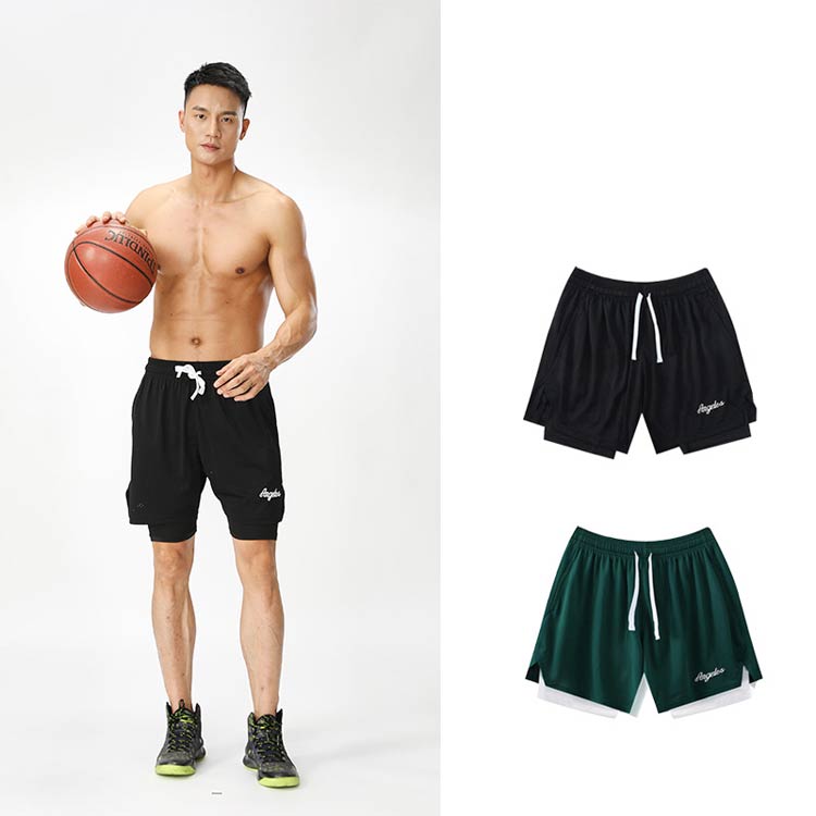 高弾力!おしゃれな重ね着風のバスケパンツ