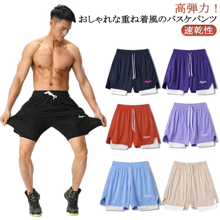短パン メンズ ジュニア バスケパンツ ショートパンツ ギフト 薄手 ストレッチ ジャージ 重ね着風 速乾性 バスパン バスケ ハーフパンツ メッシュ 通気性 半ズボン サッカ パンツ
