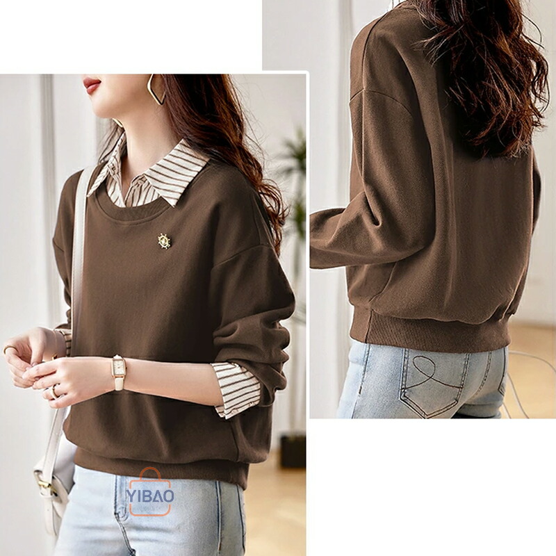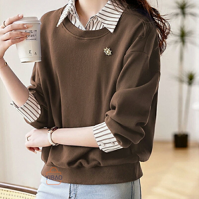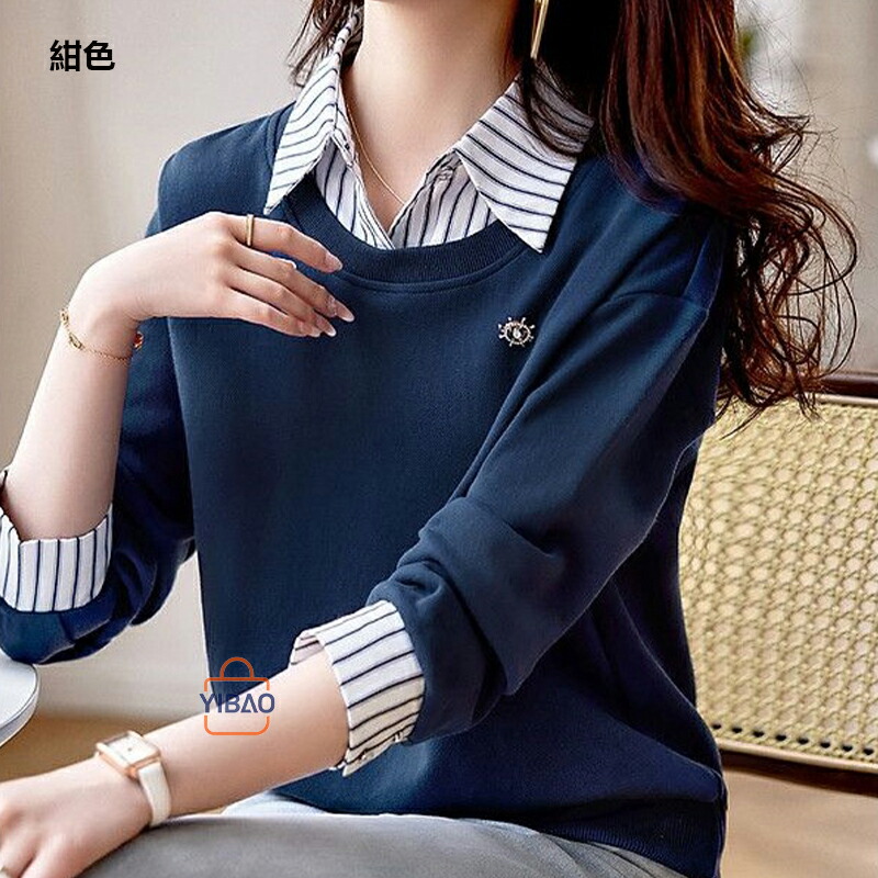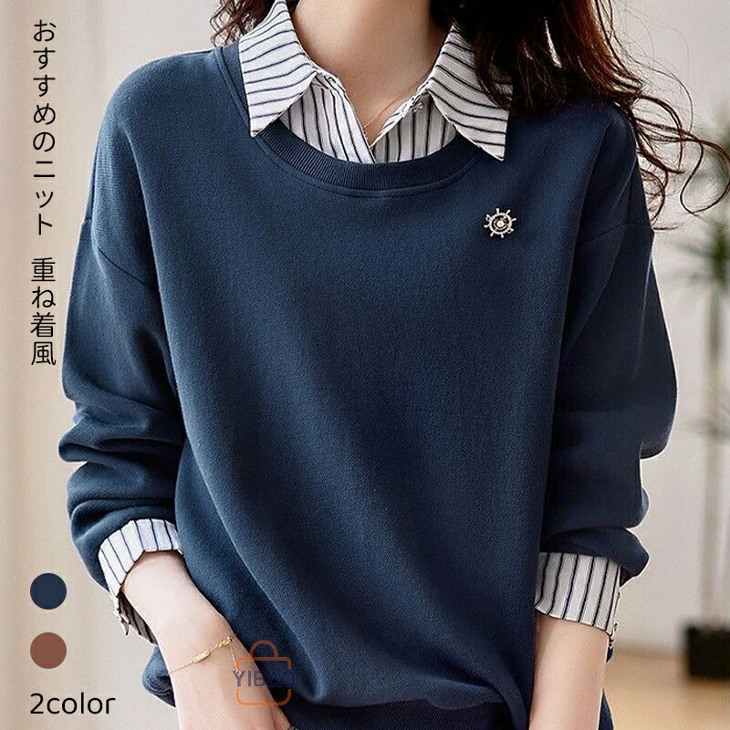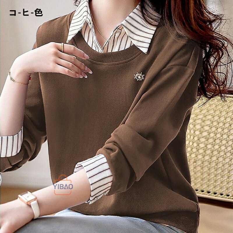 レイヤードニットシャツブラウス レディ トップス シャツ ブラウス 新登場! 紺色 コ-ヒ-色 S M L XL 2XL