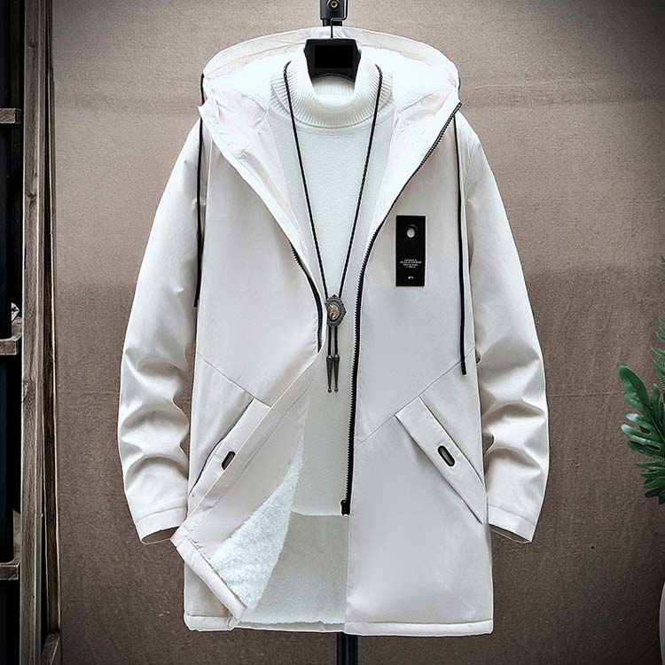シンプルでありながら、スタイリッシュな印象を与えるフード付きのデザイン。