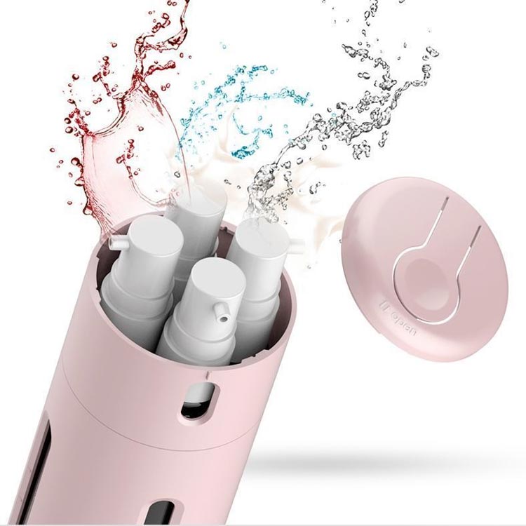 トラベルボトルの中には四個の容器が内臓されているので、容器に別々の液体(シャンプー、化粧水,トリートメントなど)を収納することができます。