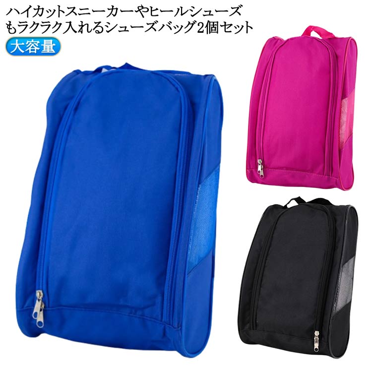 ハイカットスニーカーやヒールシューズもラクラク入れるシューズバッグ2個セット。