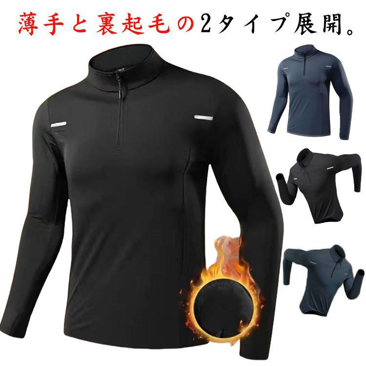 スポーツインナー メンズ 長袖 トップス 春秋冬 アンダーウェア インナーシャツ ハーフジッパー 保温 薄手 ストレッチ ランニング トレーニングウェア 自転車 バイク サッカー ゴルフウェア