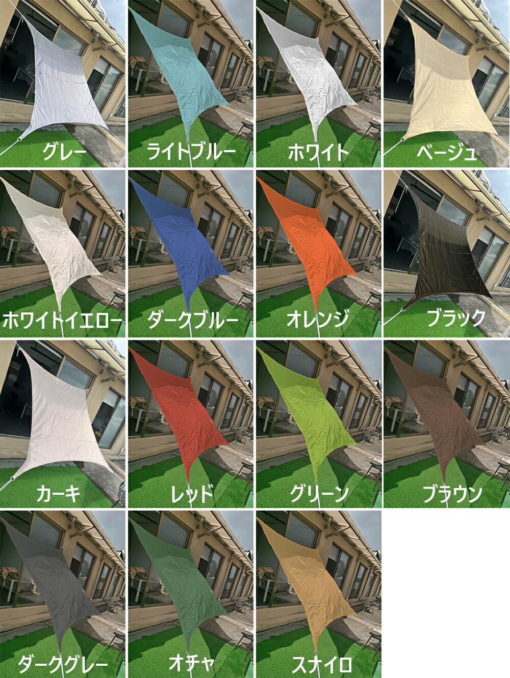 サンシェード 日よけ シェード 目隠し グレー カーキ ブラウン ダークグレー ホワイトイエロー スナイロ オチャ ホワイト ベージュ オレンジ グリーン ブラック ダークブルー レッド