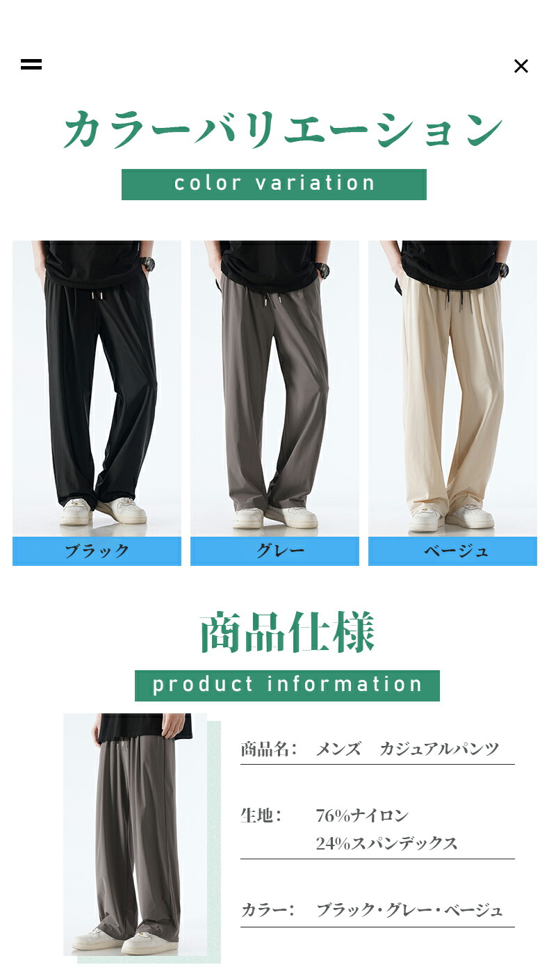 商品:アイスシルク カジュアルパンツ メンズ