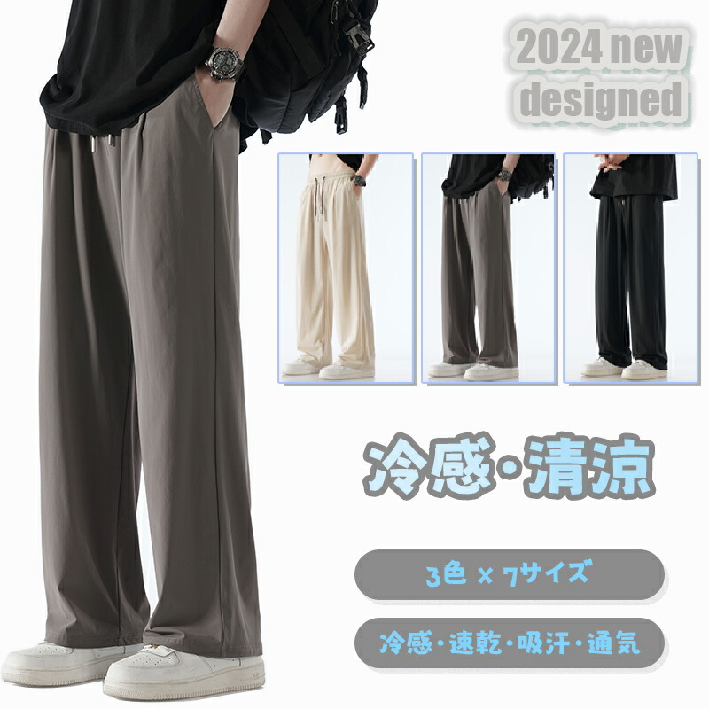 ワイドパンツ メンズ アイスシルクパンツ 冷感パンツ ズボン 接触冷感 夏用 イージーぱんつ 涼しい スラックス 軽快 ずぼん ゆったり 大きいサイズ ストレートパンツ オフィスカジ ボトムス