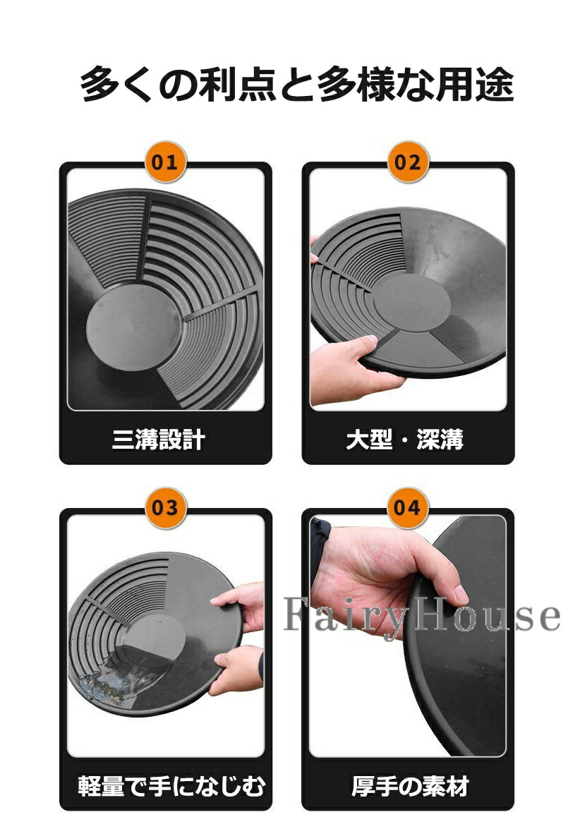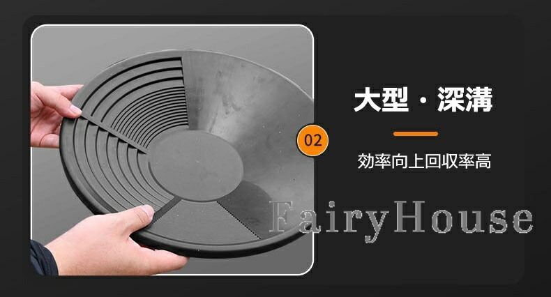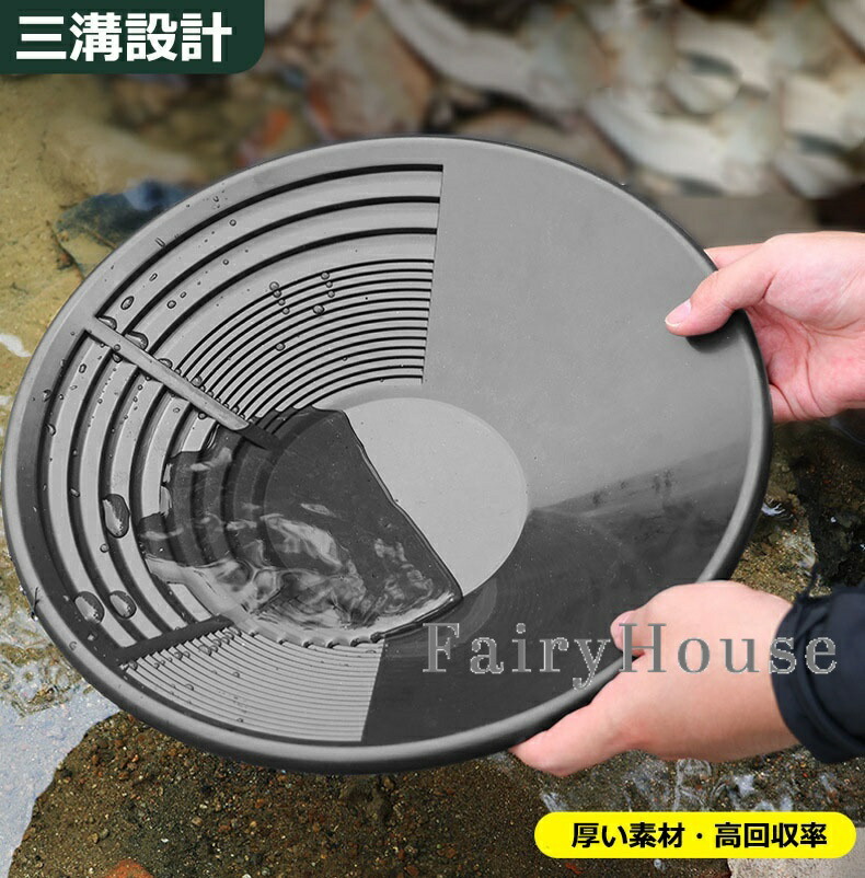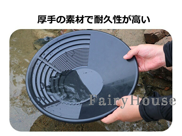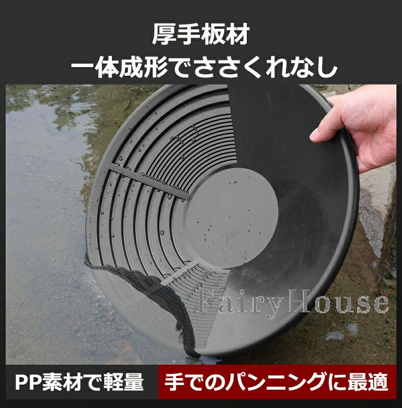 【簡単操作】手動洗浄式の構造で、特別な電源や機械を必要とせず、水と手の動きだけで砂金と砂利を分離できます。パンの内側には砂金を捕捉しやすい溝や凹凸設計が施され、手動操作でも高い砂金回収率を実現します。