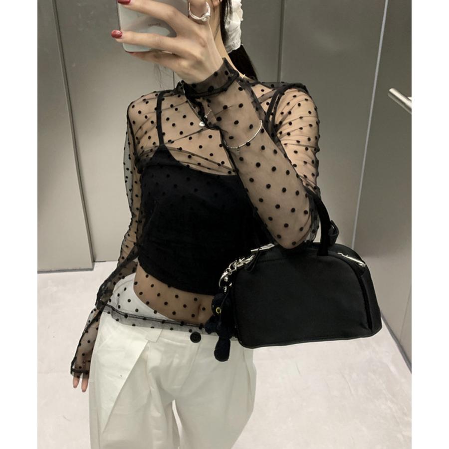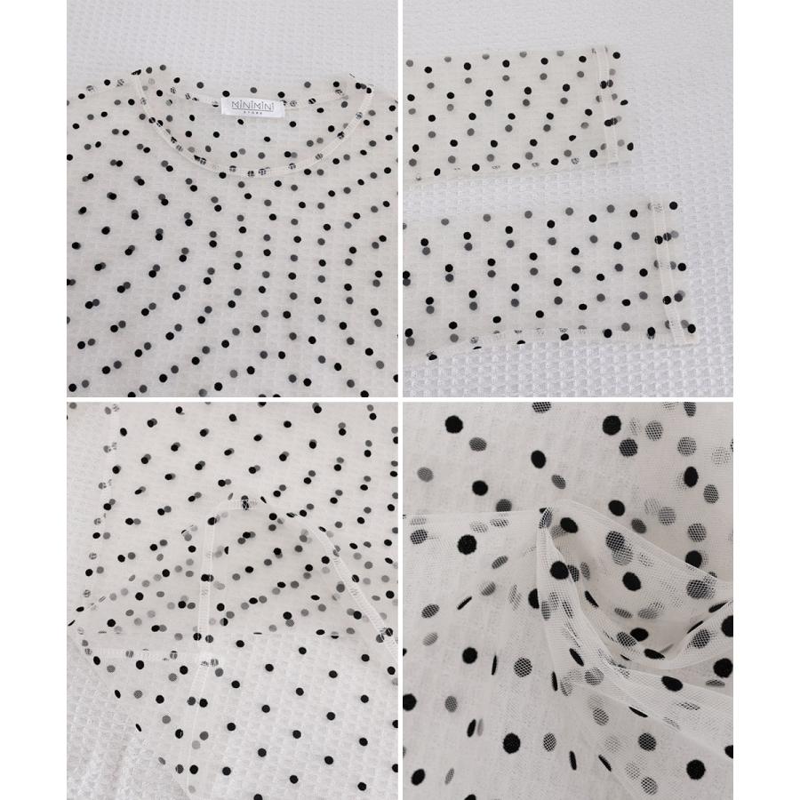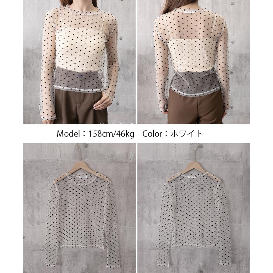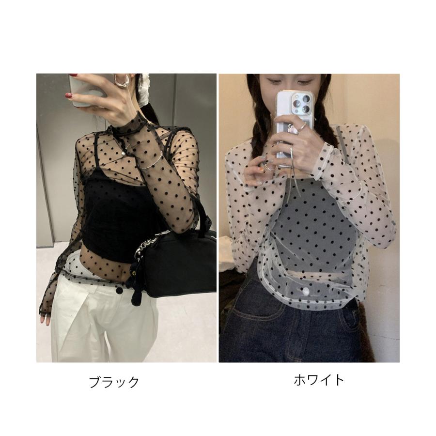 ドット柄シアートップス チュールインナー レディース ポルカドットチュールブラウス大人可愛い重ね着 薄手レイヤードインナーシアーカットソー透け感シースルートップス