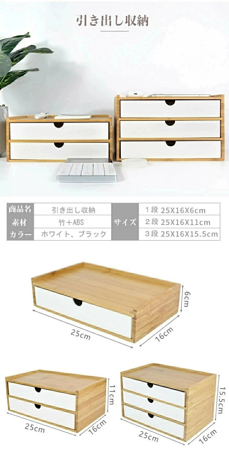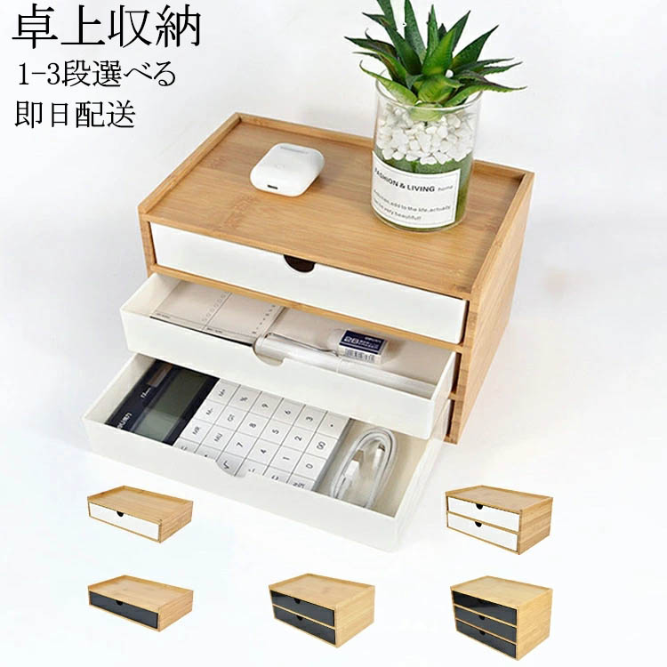 引き出し 収納ボックス 机上収納 竹製 1段 2段 3段 ホワイト ブラック