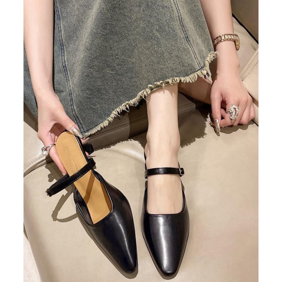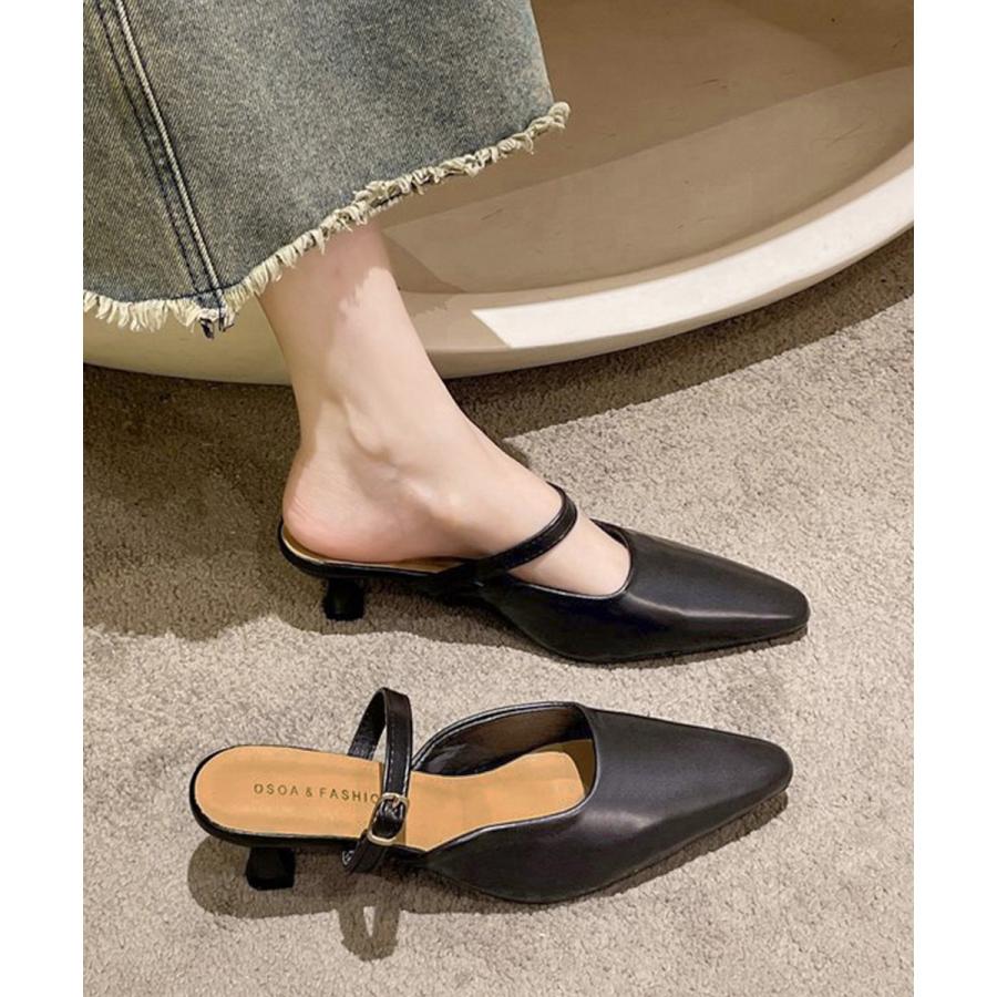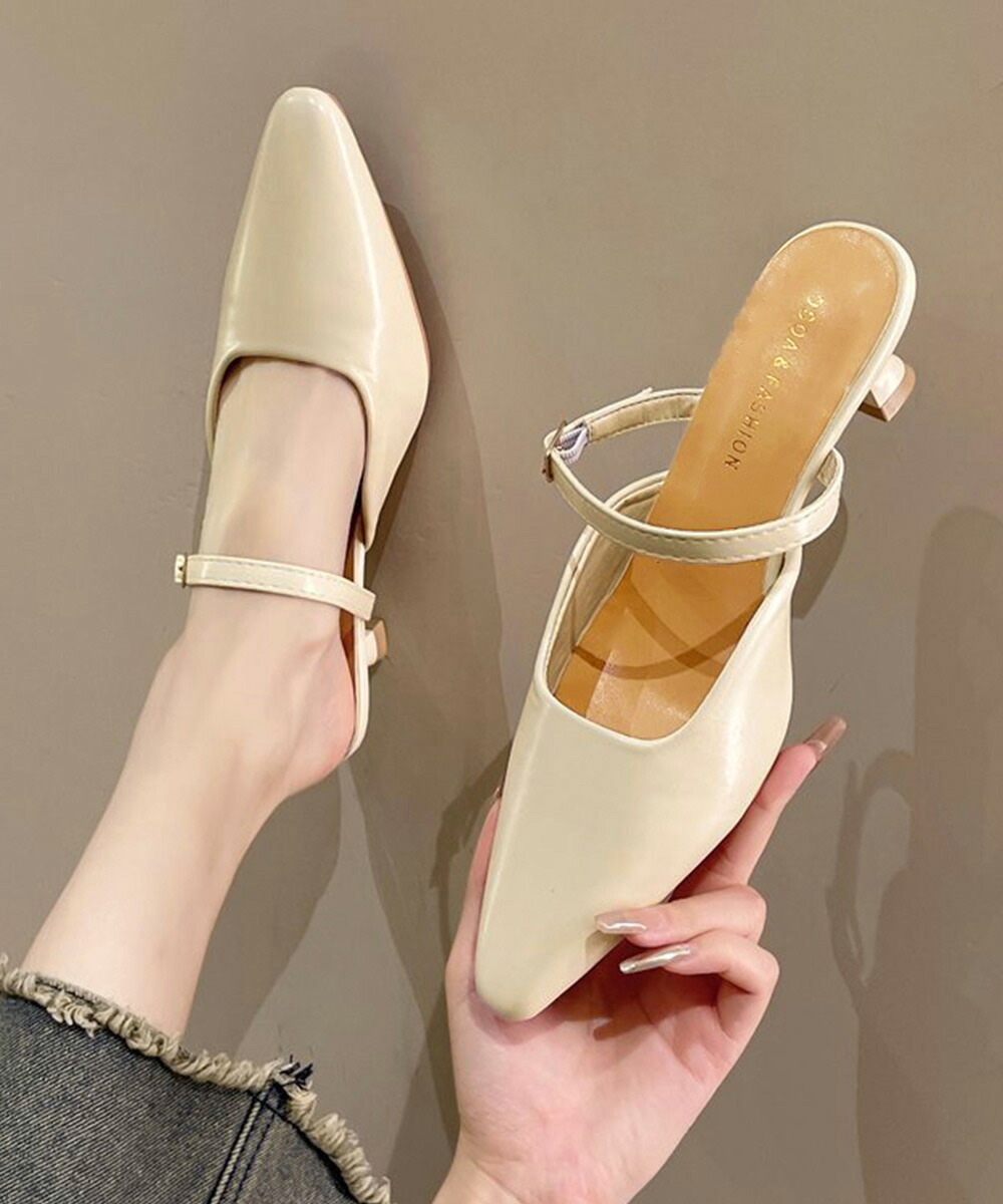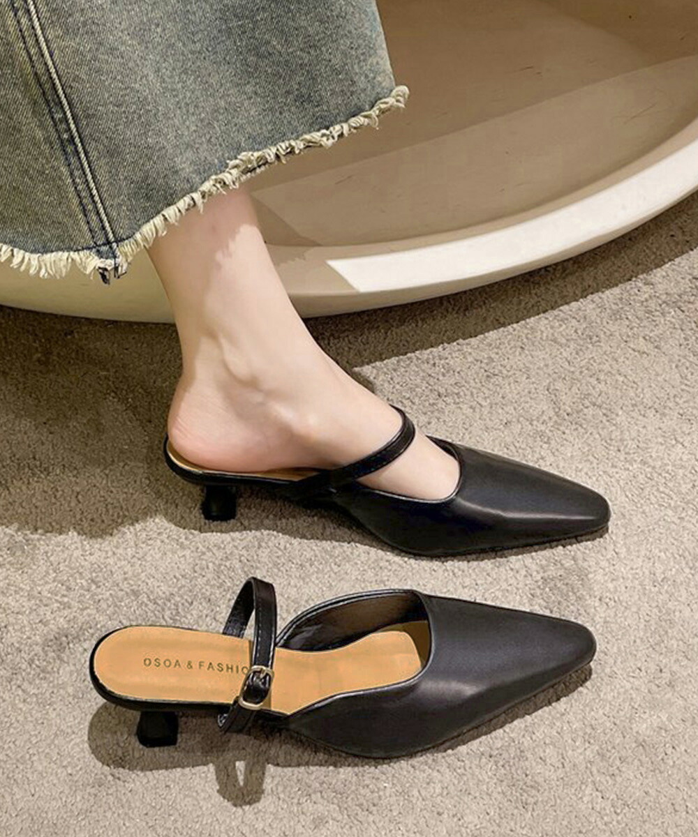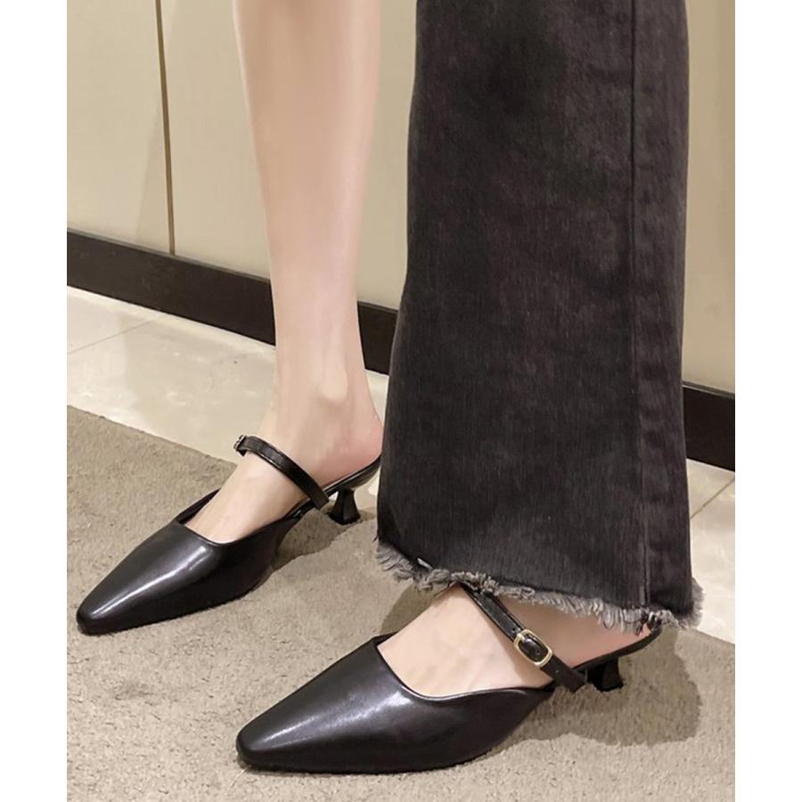 キトゥンヒールミュール オフィスカジュアル 美脚ヒールミュール 浅口ストラップパンプス 通勤シューズ 歩きやすい 春夏靴