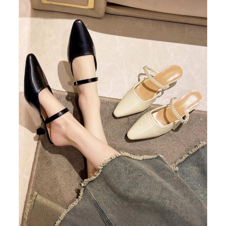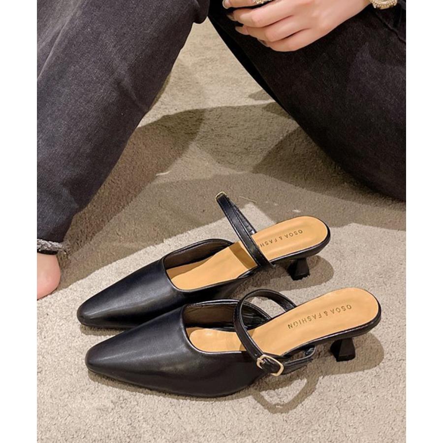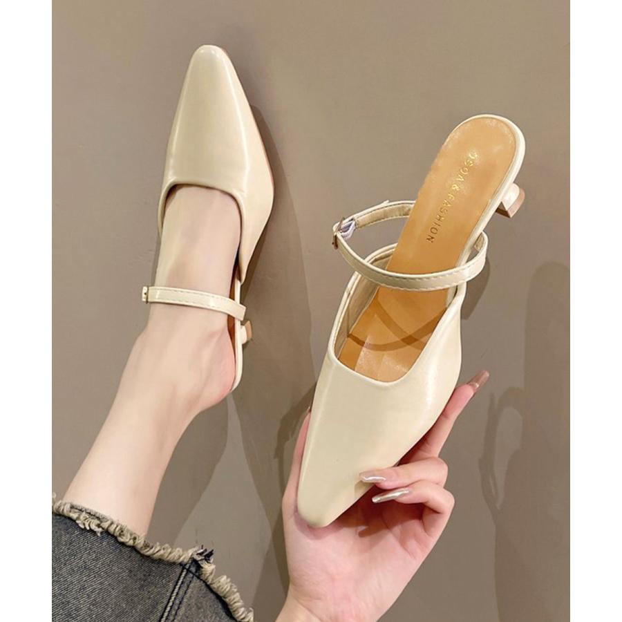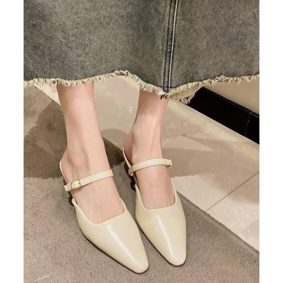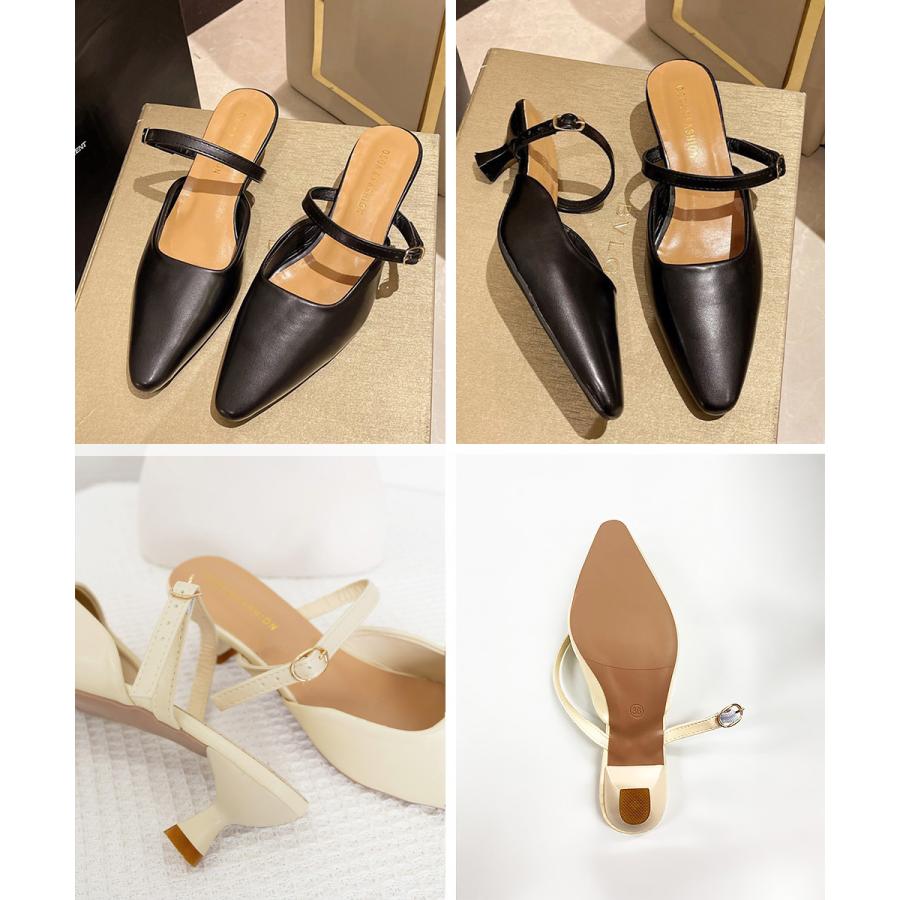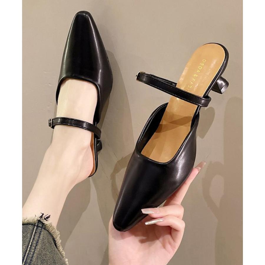 キトゥンヒールミュール オフィスカジュアル 美脚ヒールミュール 浅口ストラップパンプス 通勤シューズ 歩きやすい 春夏靴