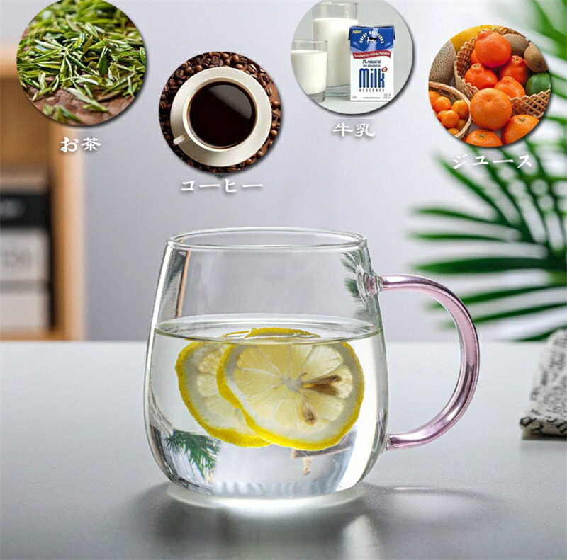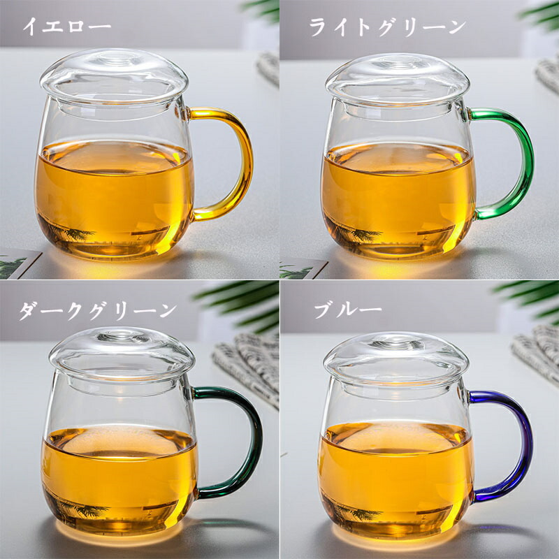 グラスカップ 350ml 4個セット コーヒー お茶用品 マグカップ ティーカップ ティーカップ 通販 イエロー ライトグリーン ダークグリーン ブルー ピンク 透明