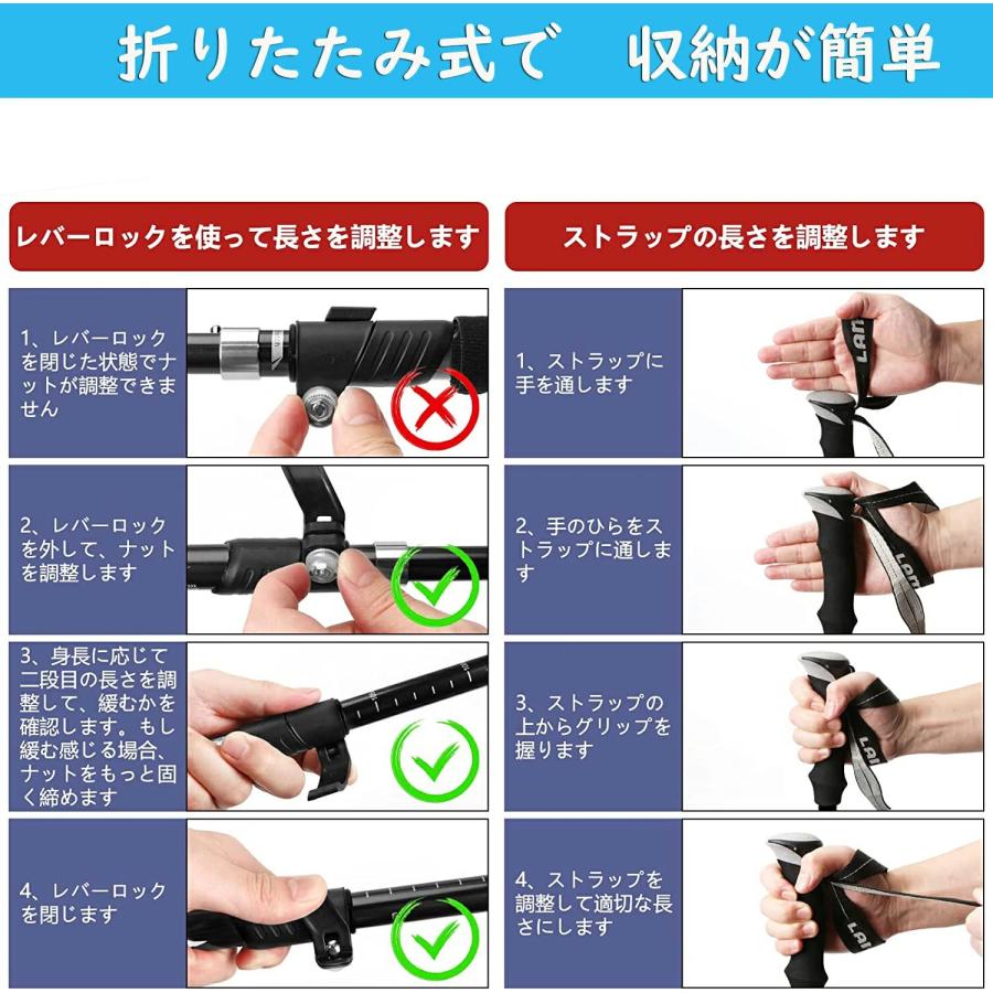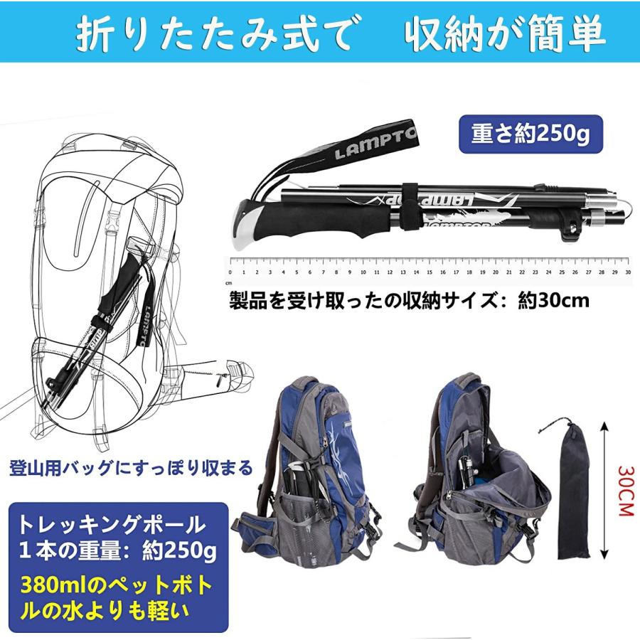 トレッキングポール 登山ストック 折りたたみ式 ウォーキング ストック ステッキ ポール 杖 アウトドア 収納バッグ付き 登山